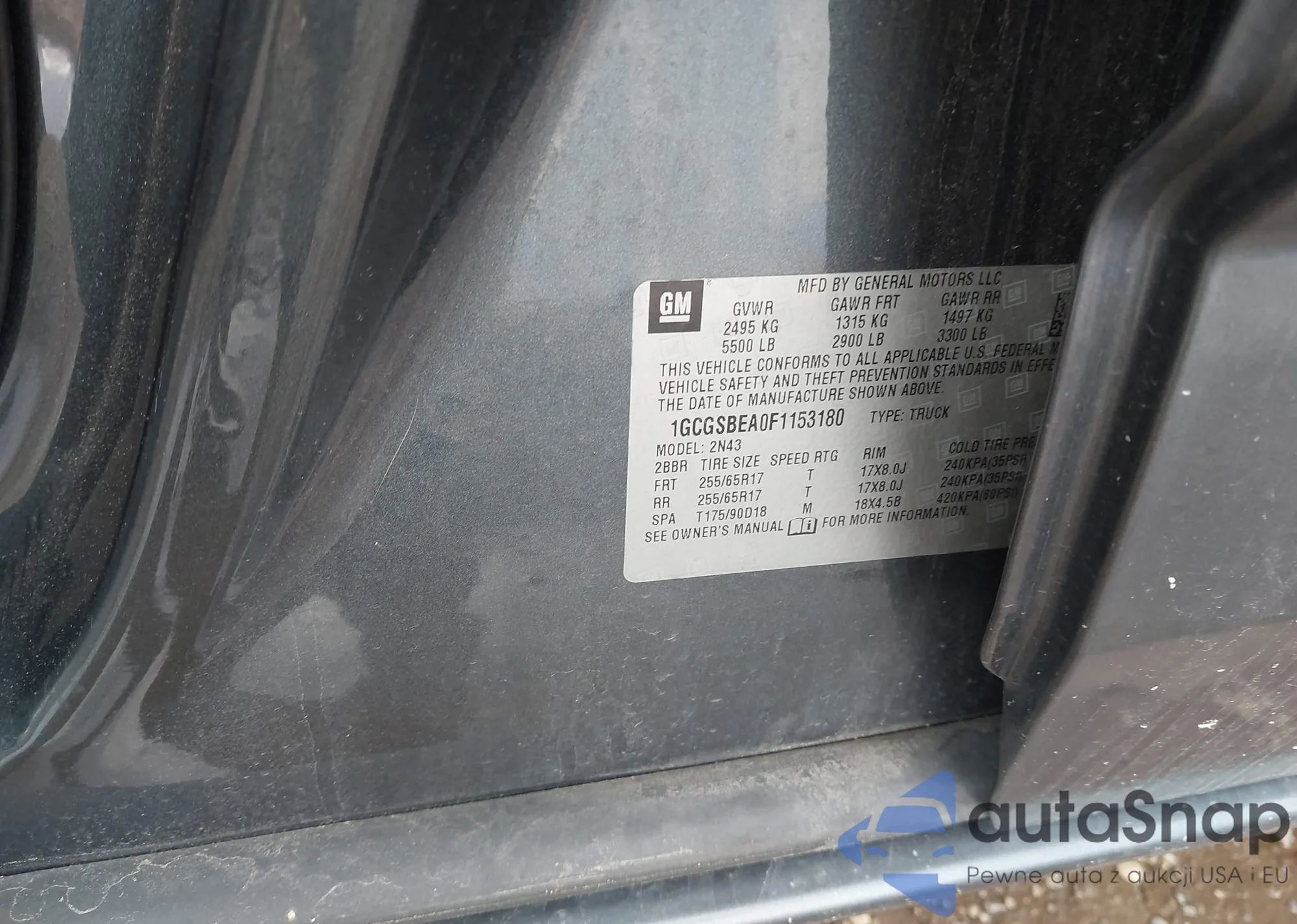 • VIN 1GCGSBEA0F1153180
