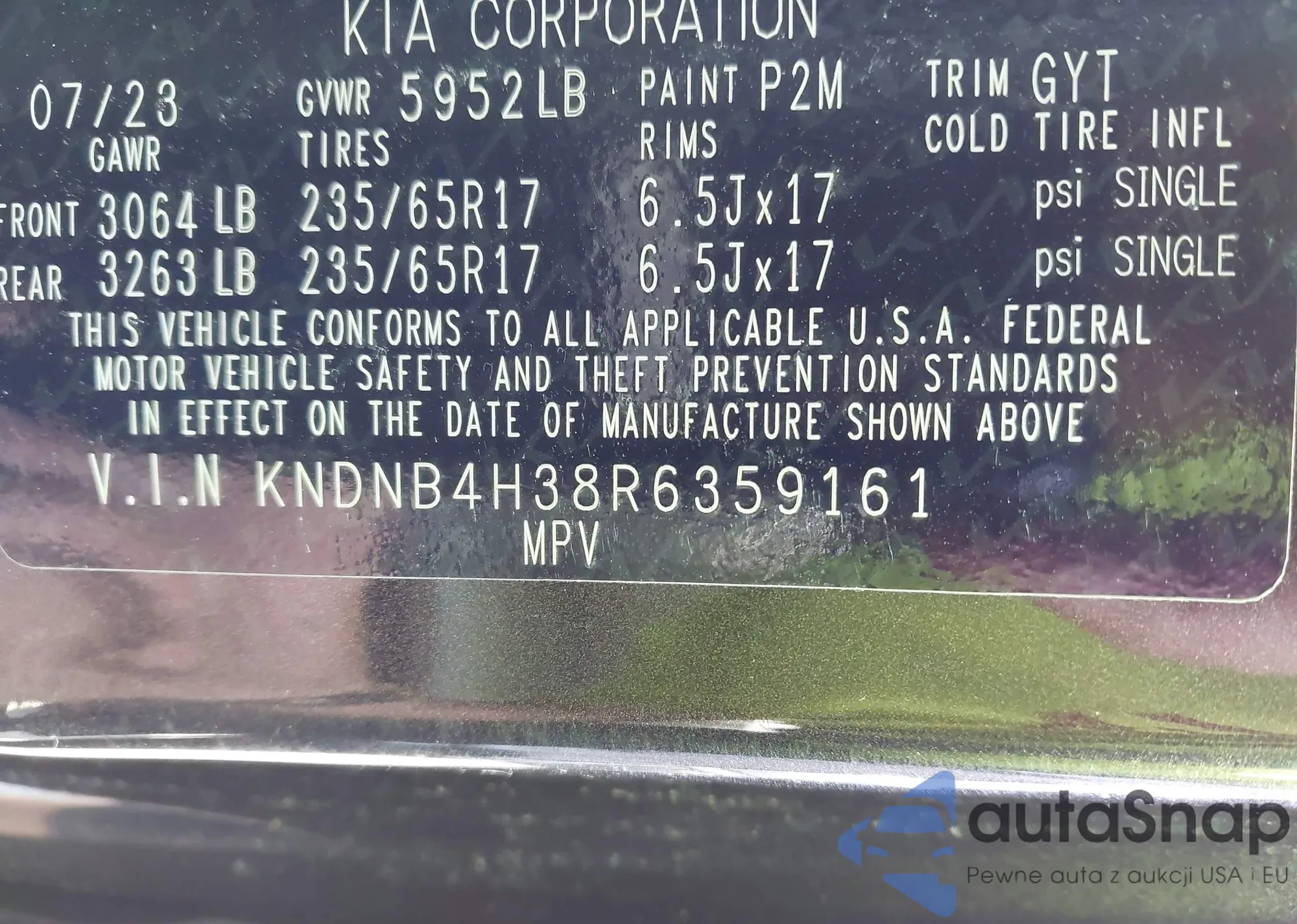 • VIN KNDNB4H38R6359161