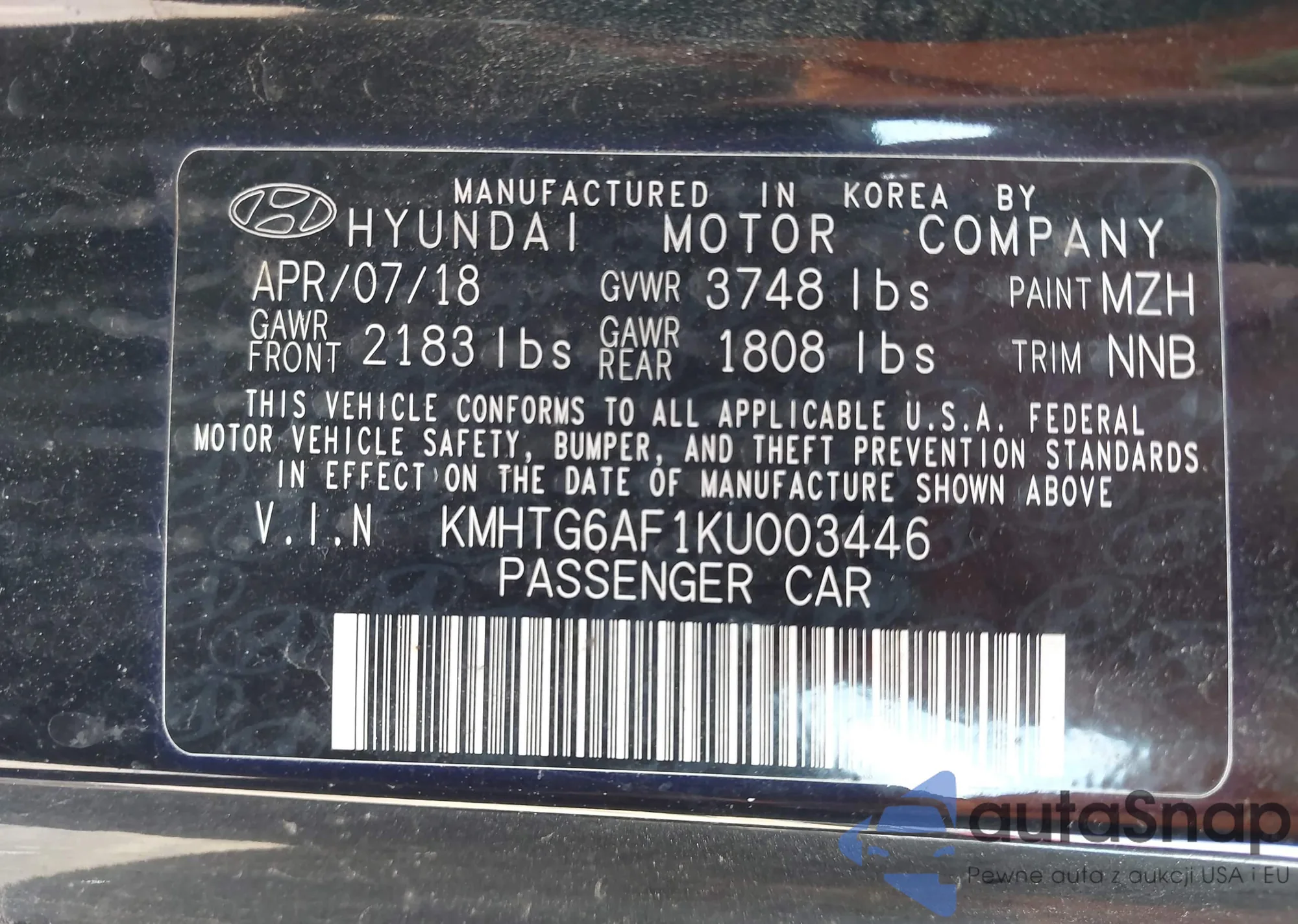 • VIN KMHTG6AF1KU003446