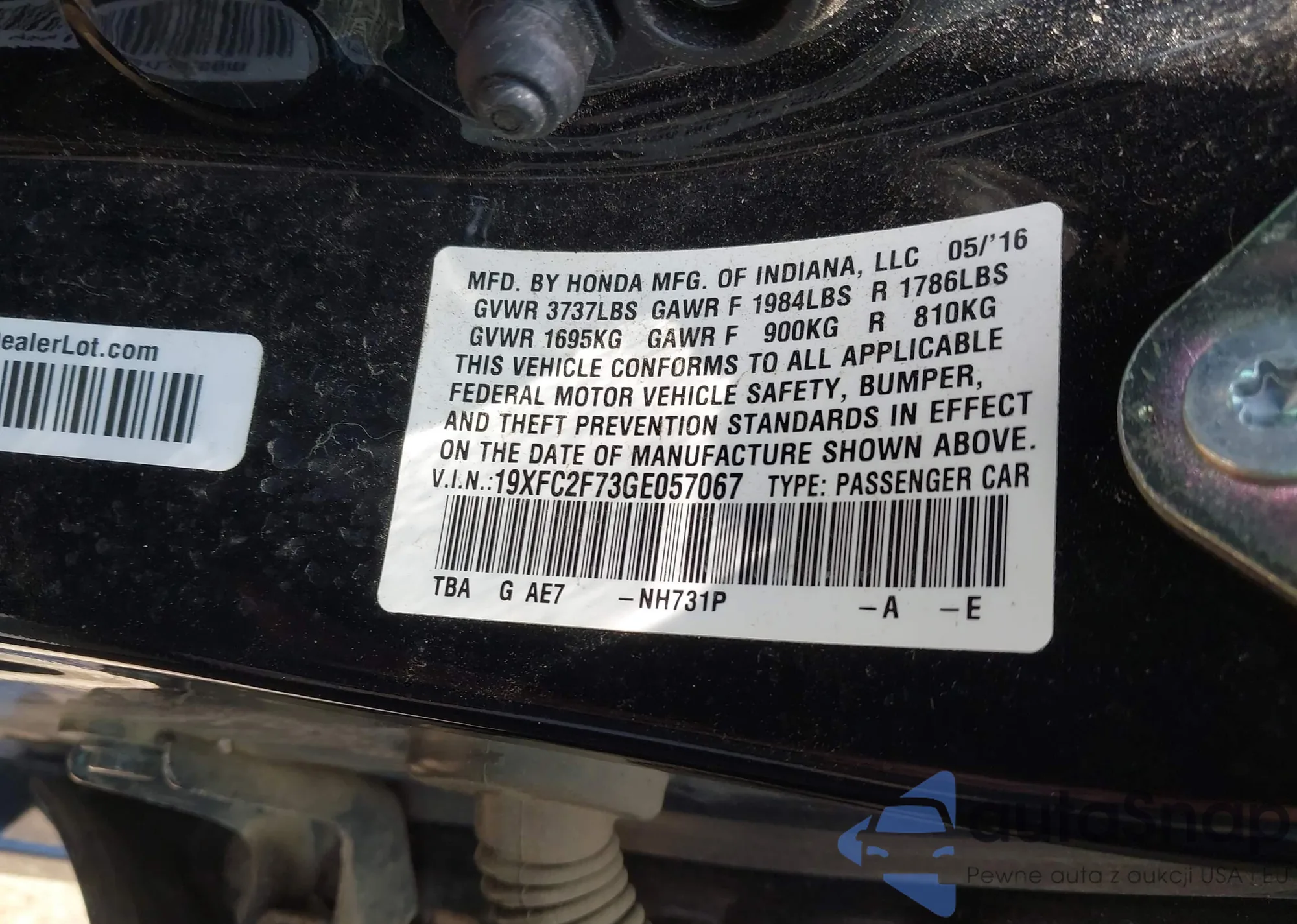 • VIN 19XFC2F73GE057067