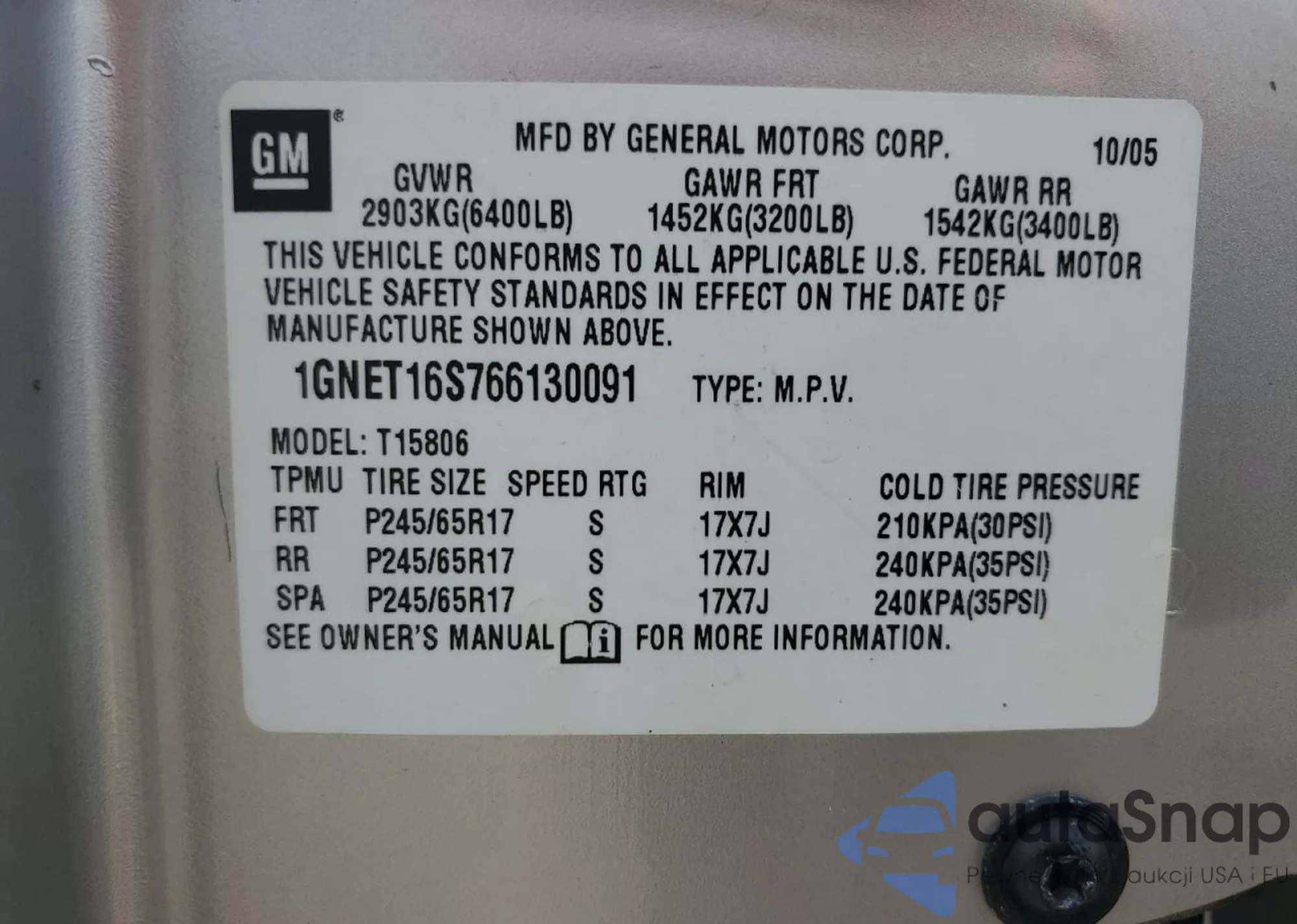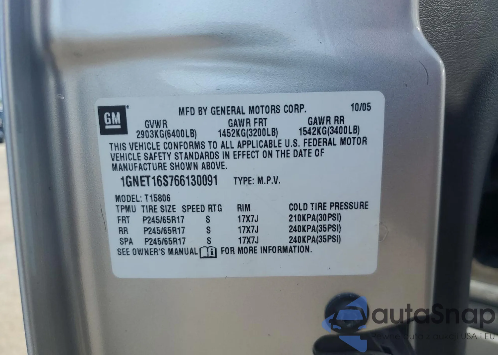 LOT: 65406335 VIN: 1GNET16S766130091