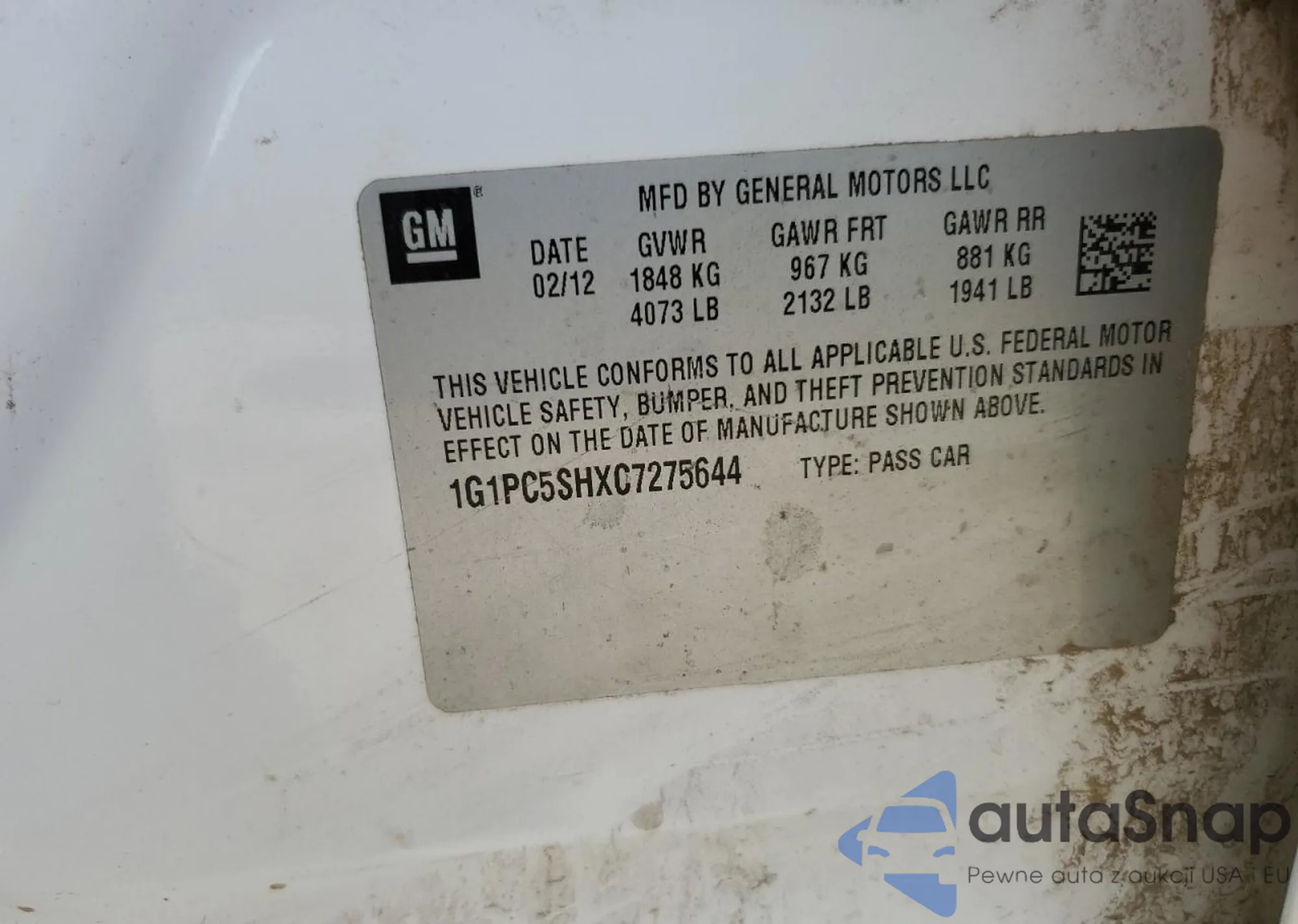 LOT: 63647785 VIN: 1G1PC5SHXC7275744