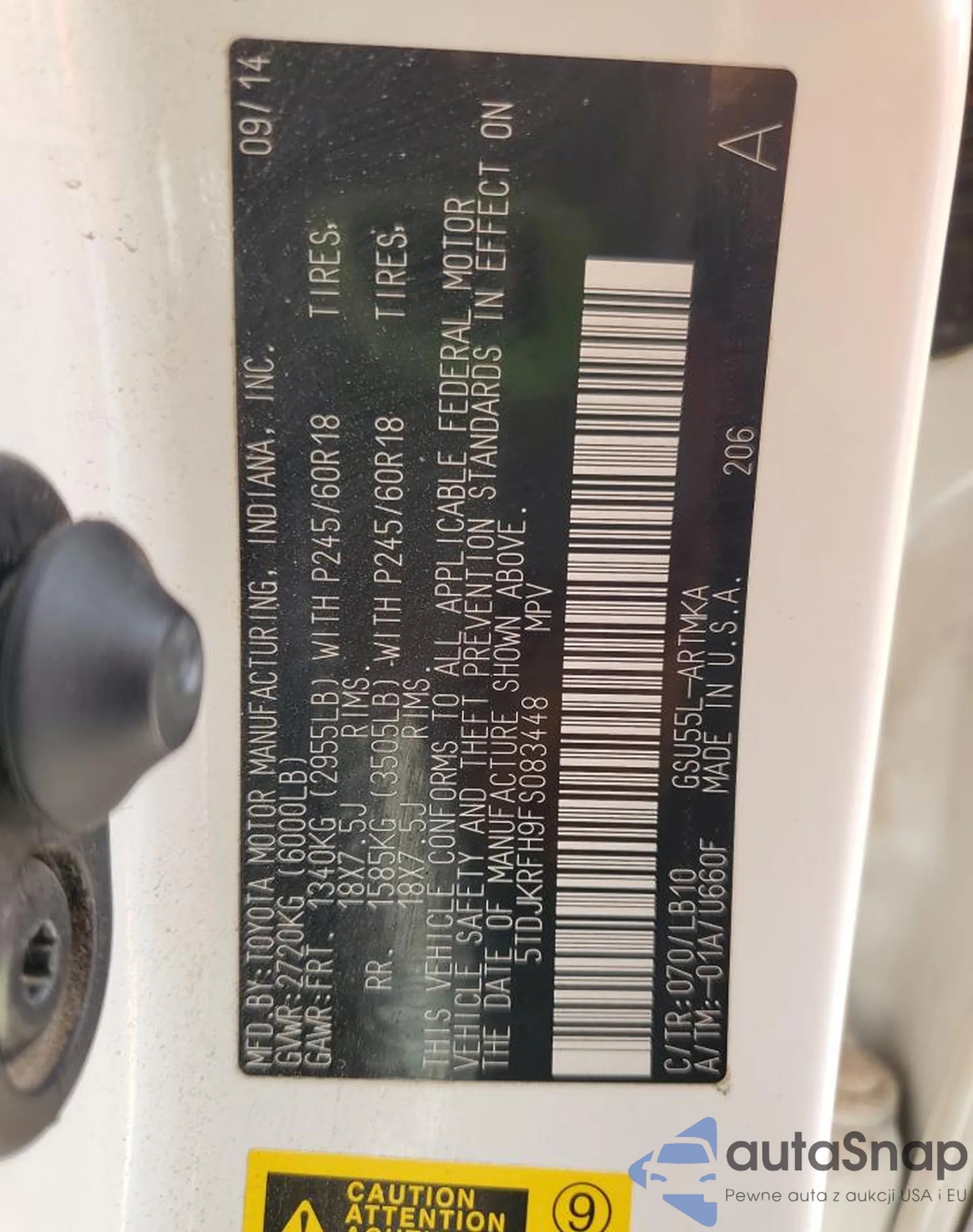 • VIN 5TDJKRFH9FS083448