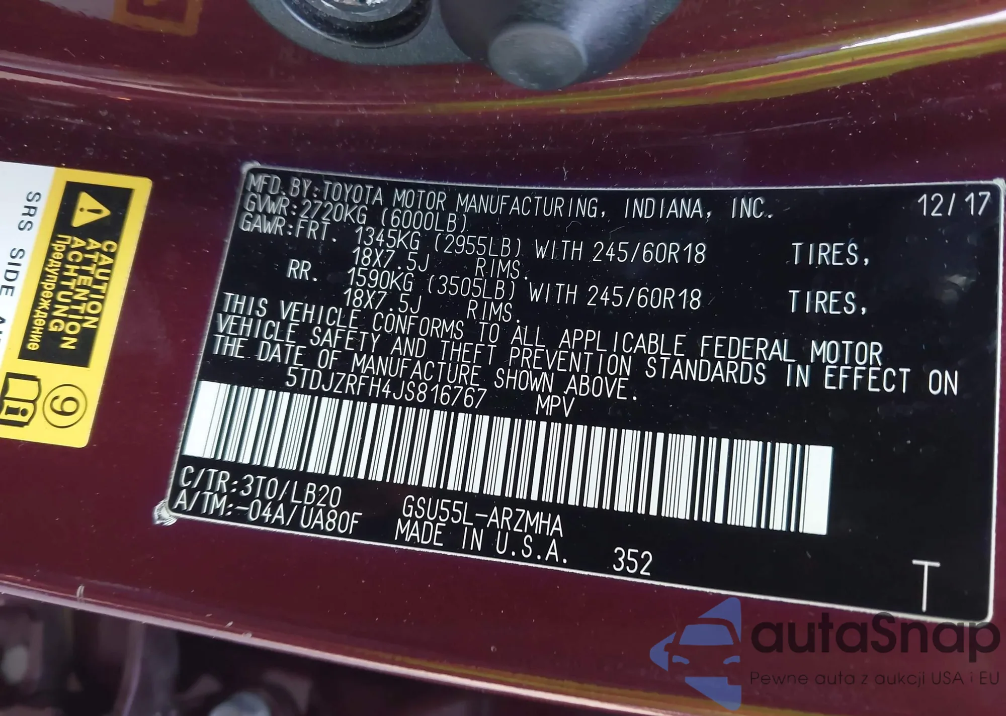 • VIN 5TDJZRFH4JS816767