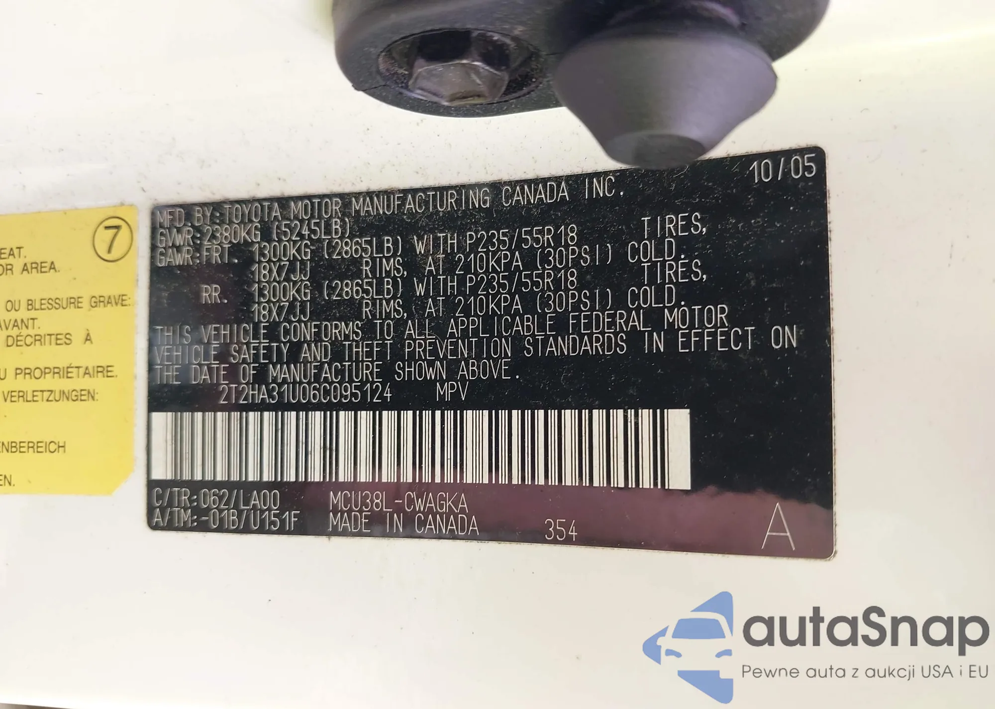 • VIN 2T3P1RFV7MC152606