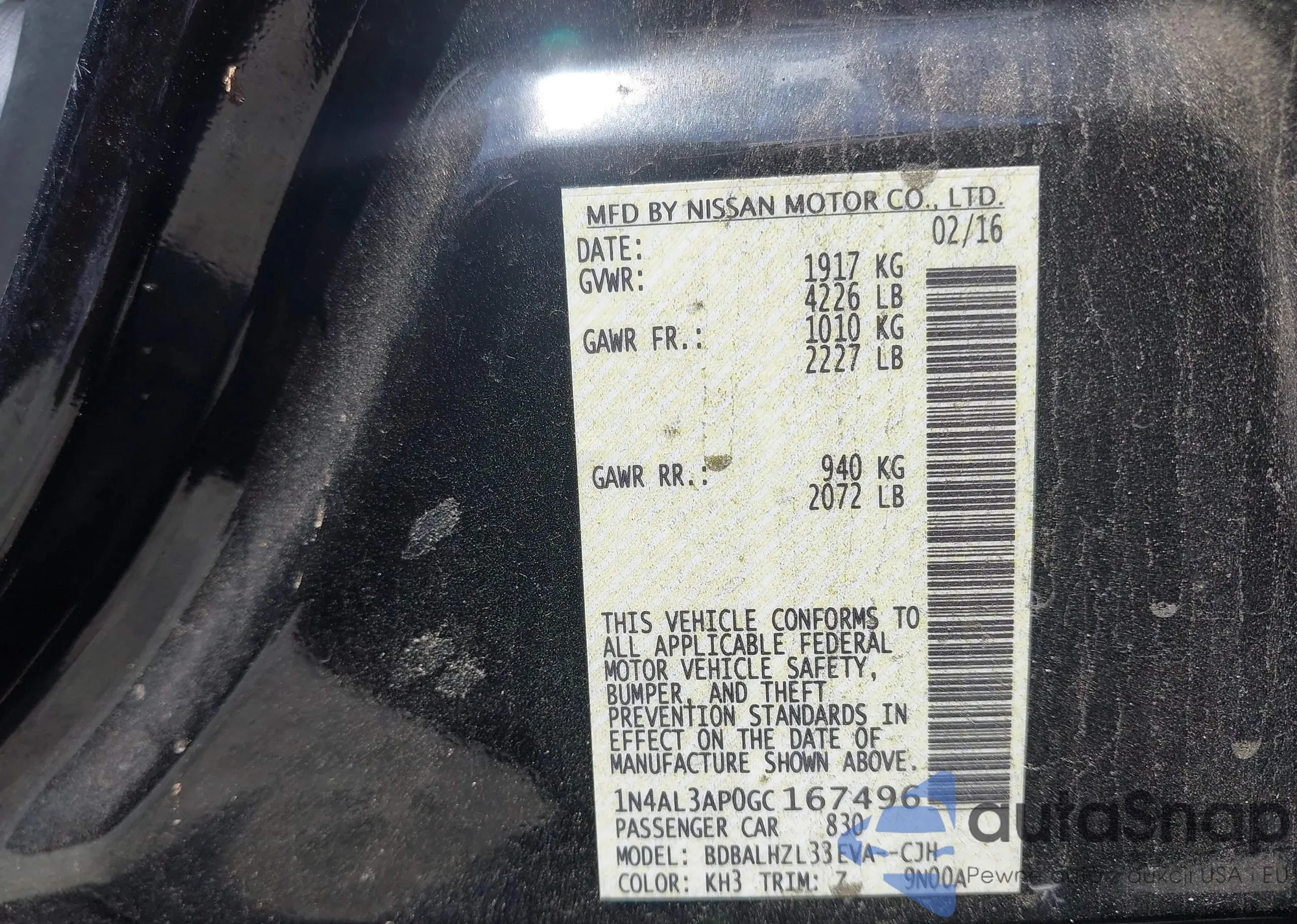 LOT: 42545434 VIN: 1N4AL3AP0GC167496