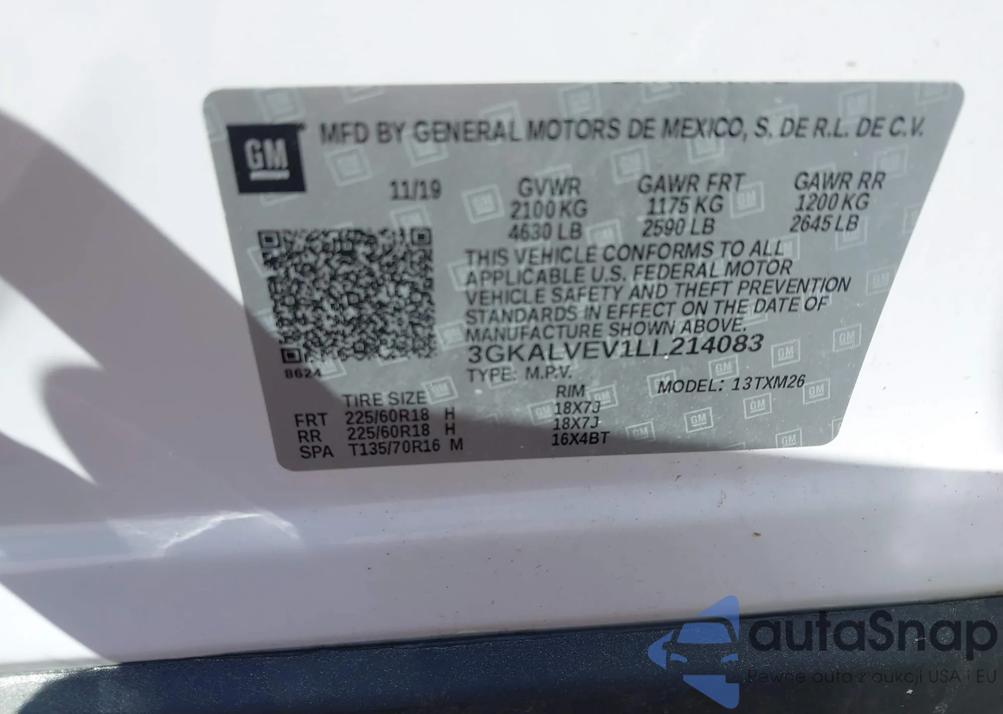 LOT: 42462930 VIN: 3GKALVEV1LL214083