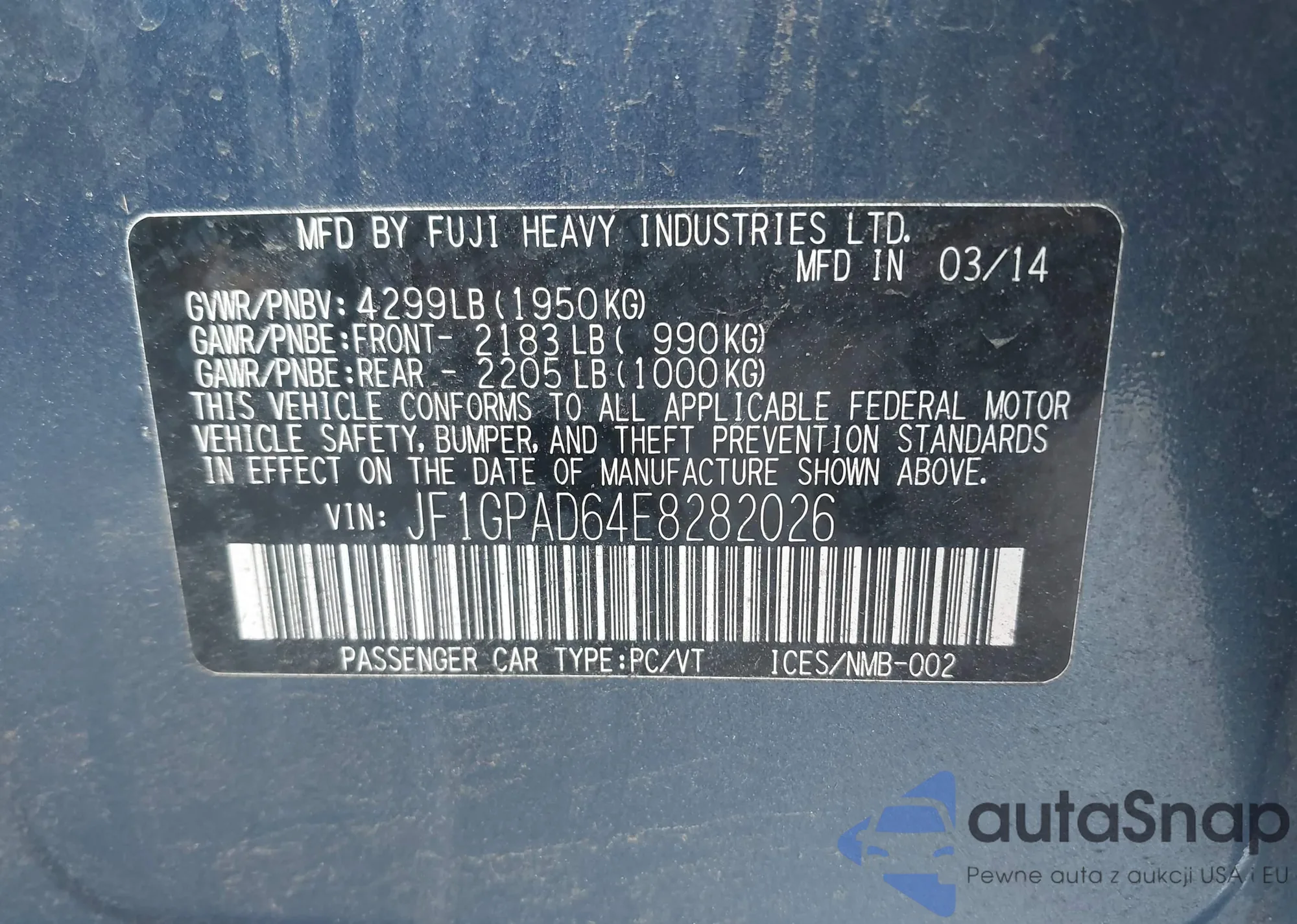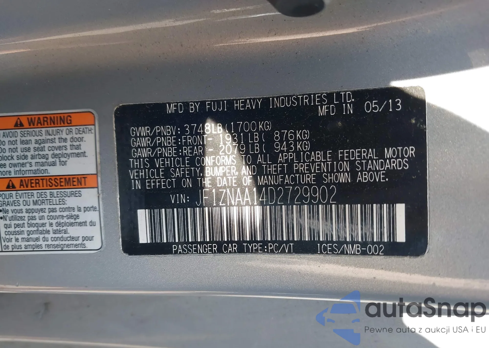 LOT: 42819124 VIN: 4S4BRCSC1D3281961