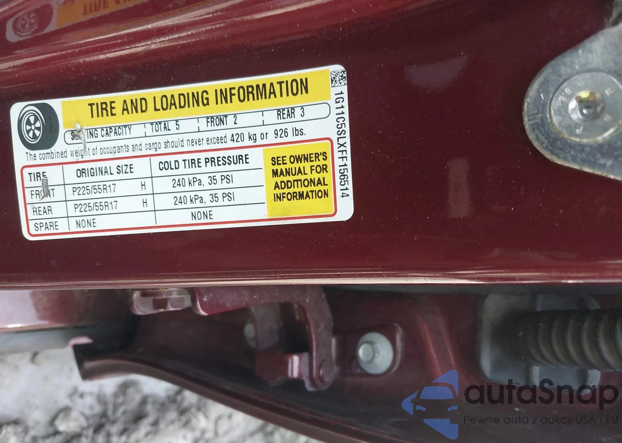 LOT: 42280915 VIN: 1G11C5SLXFF156514