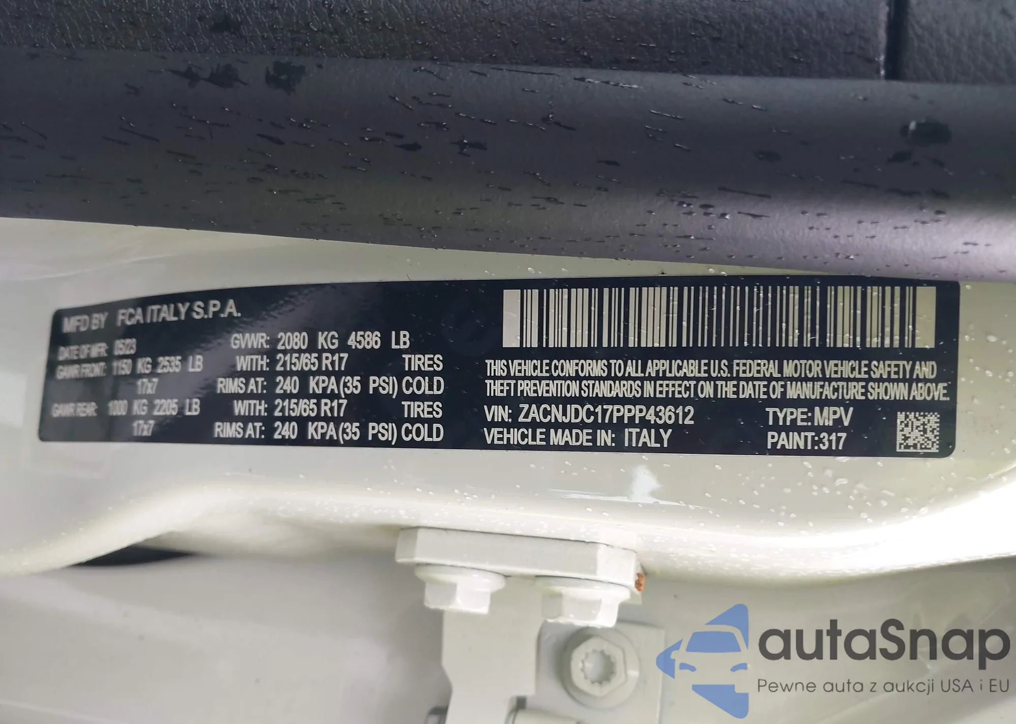 LOT: 42486733 VIN: ZACNJDC17PPP43612