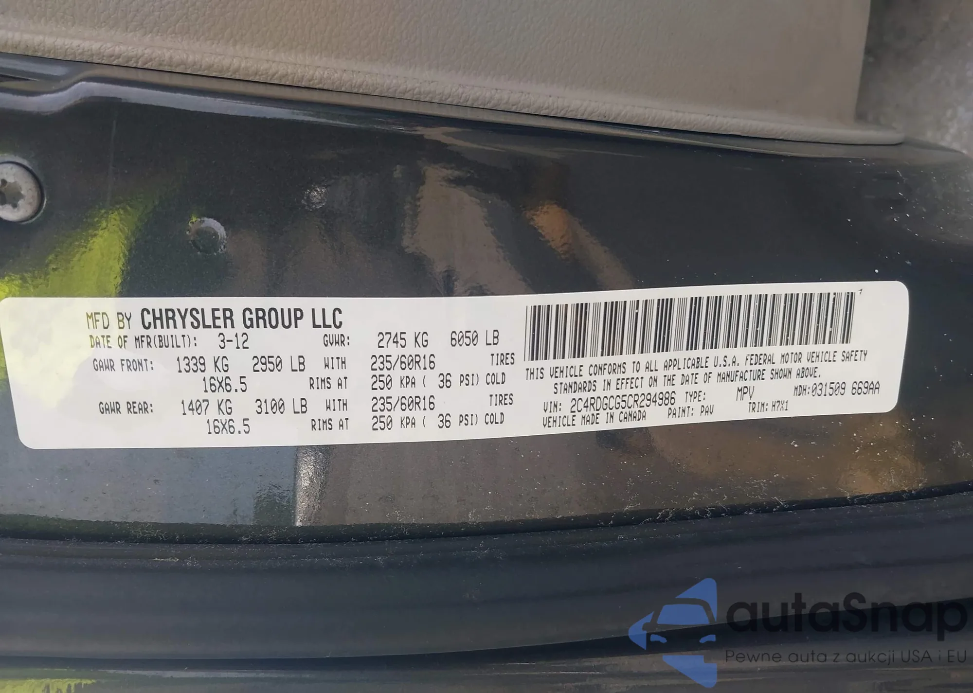 • VIN 2C4RDGCG5CR294986