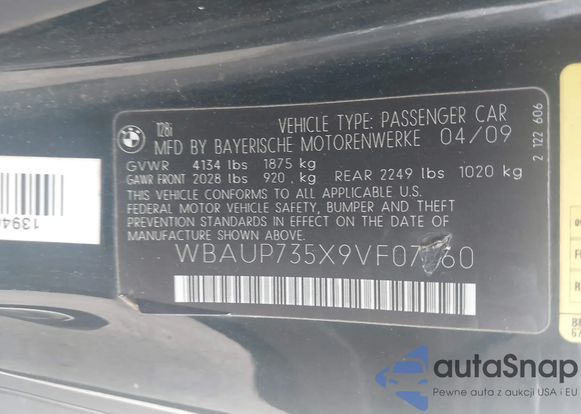 • VIN WBAUP735X9VF07260