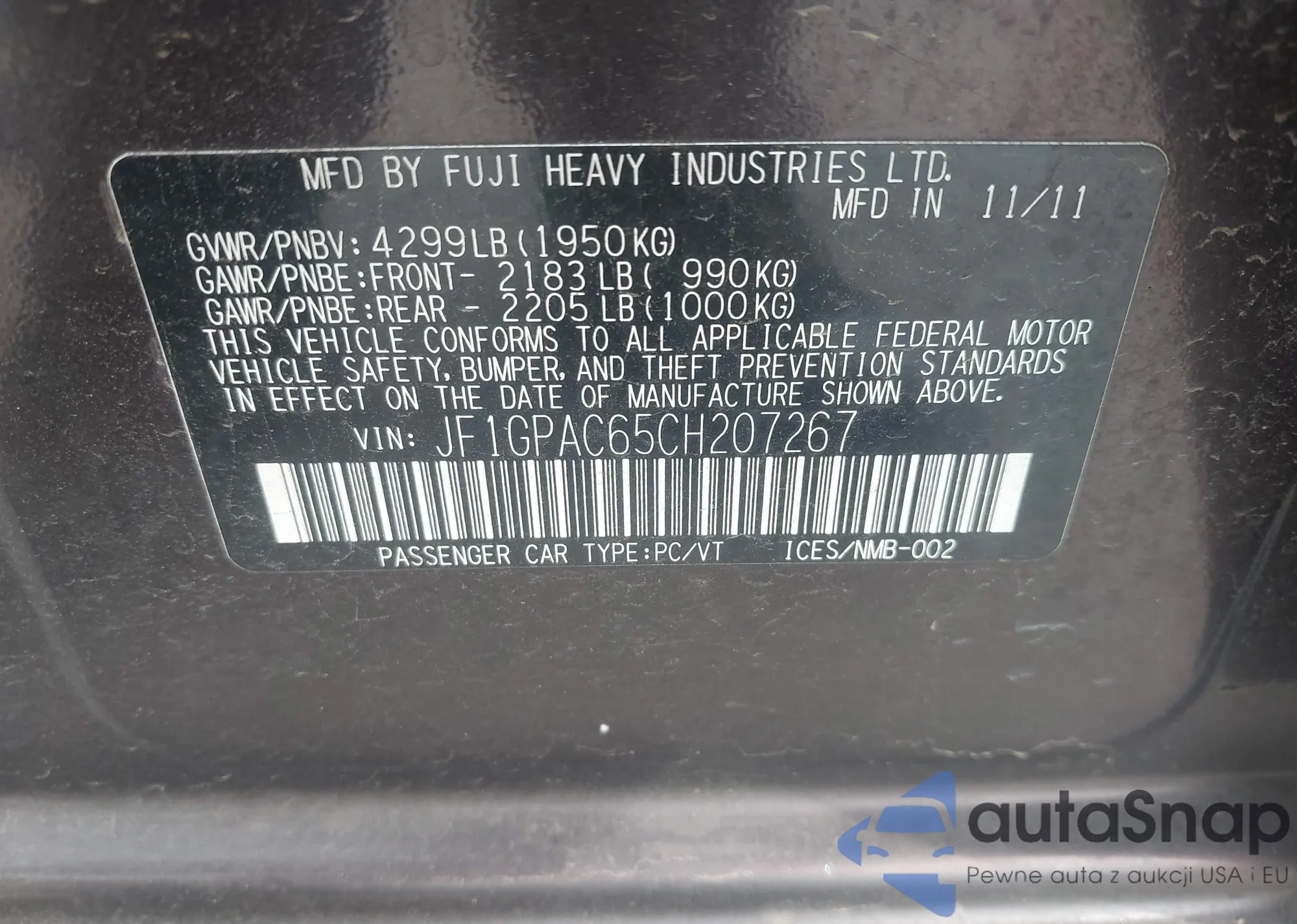 LOT: 42653425 VIN: JN8AS5MV3CW703051