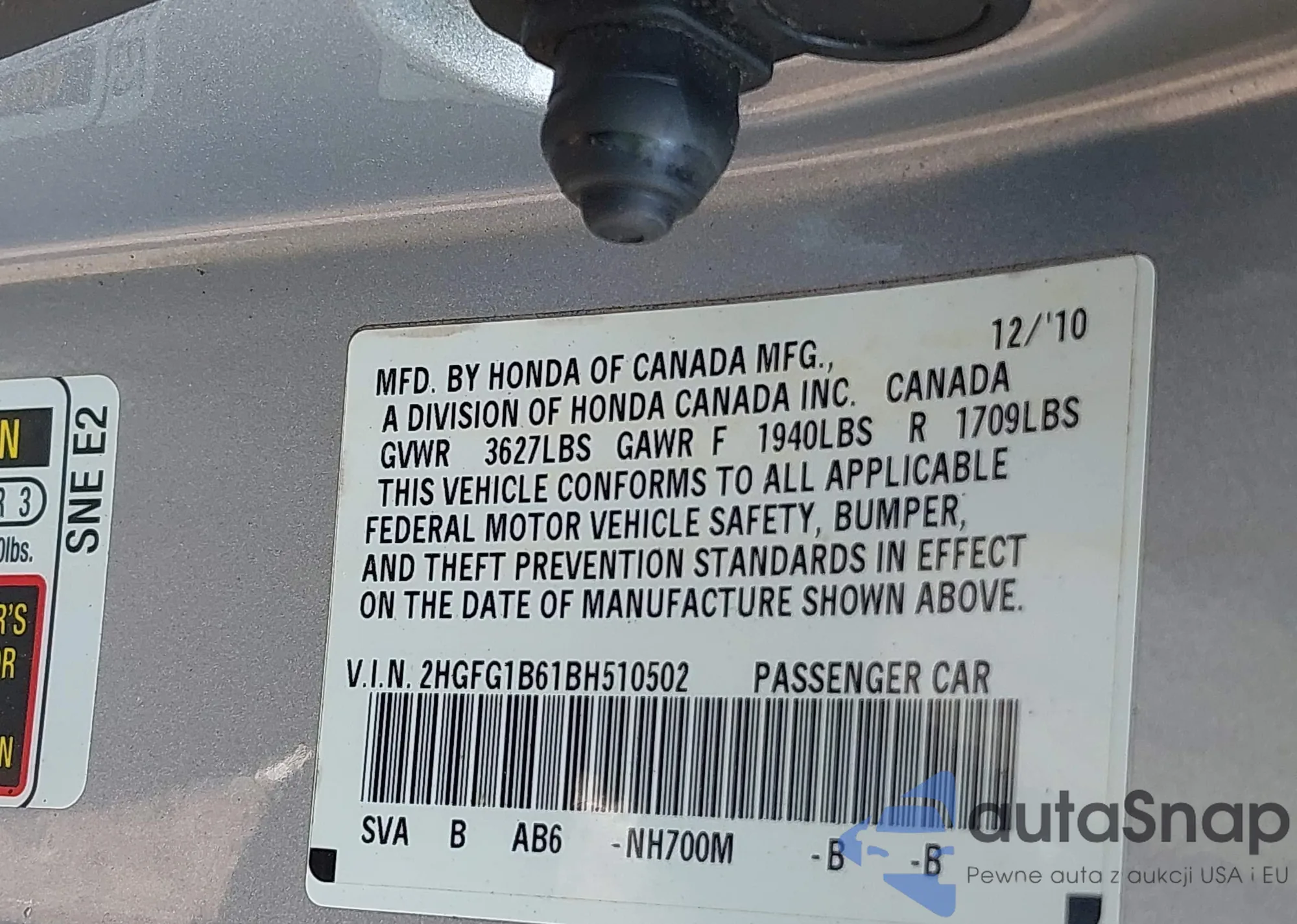 • VIN 19XZE4F52ME010366