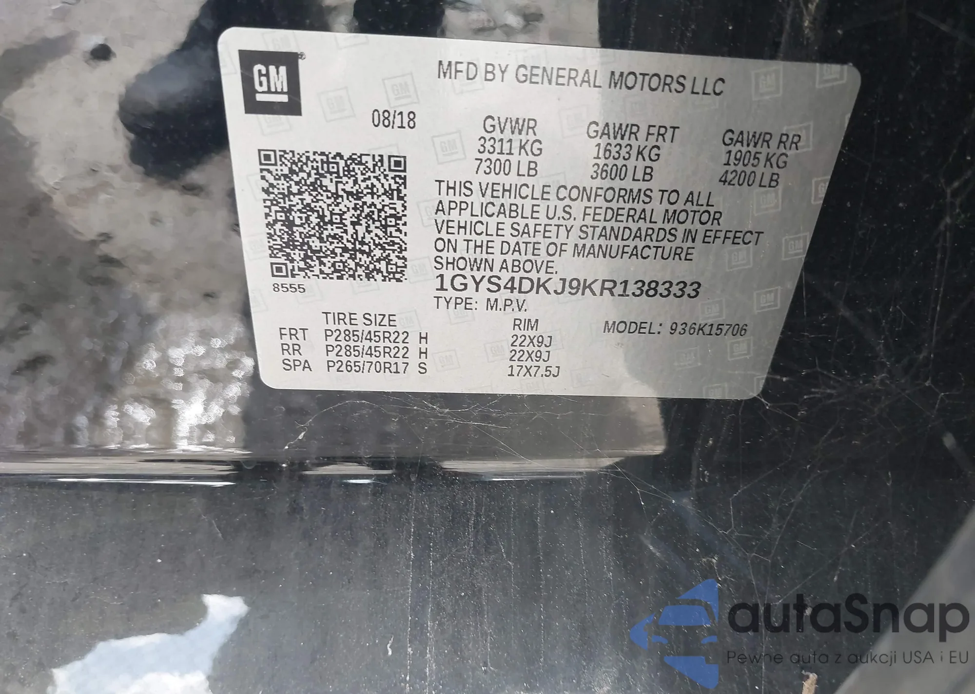 • VIN 1GYS4DKJ9KR138333