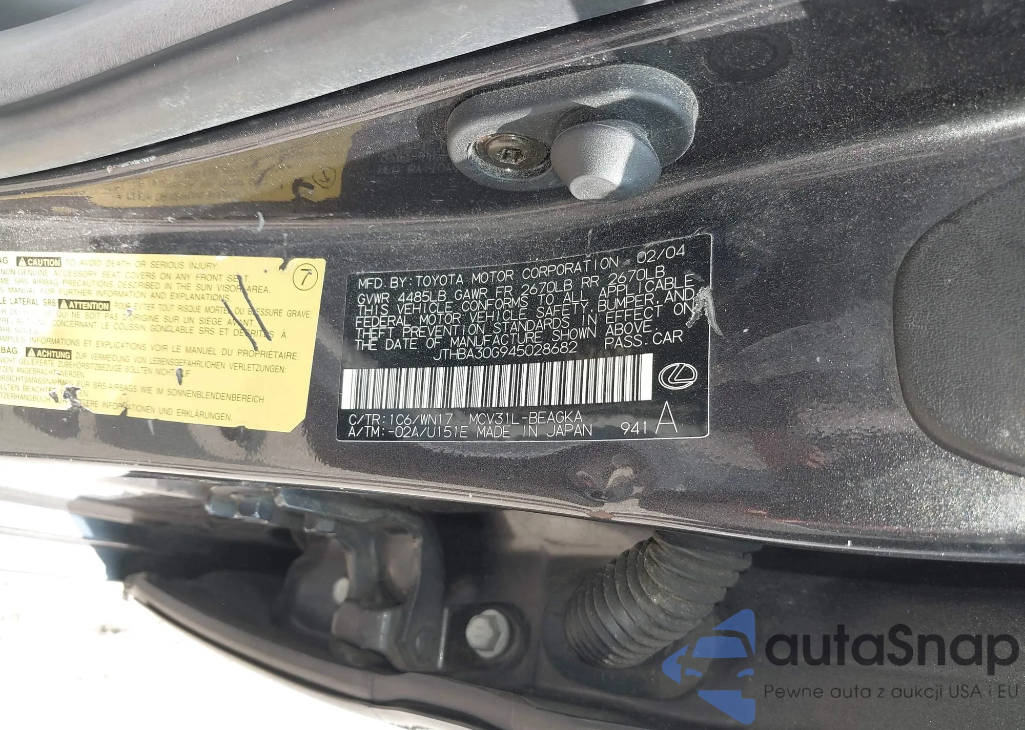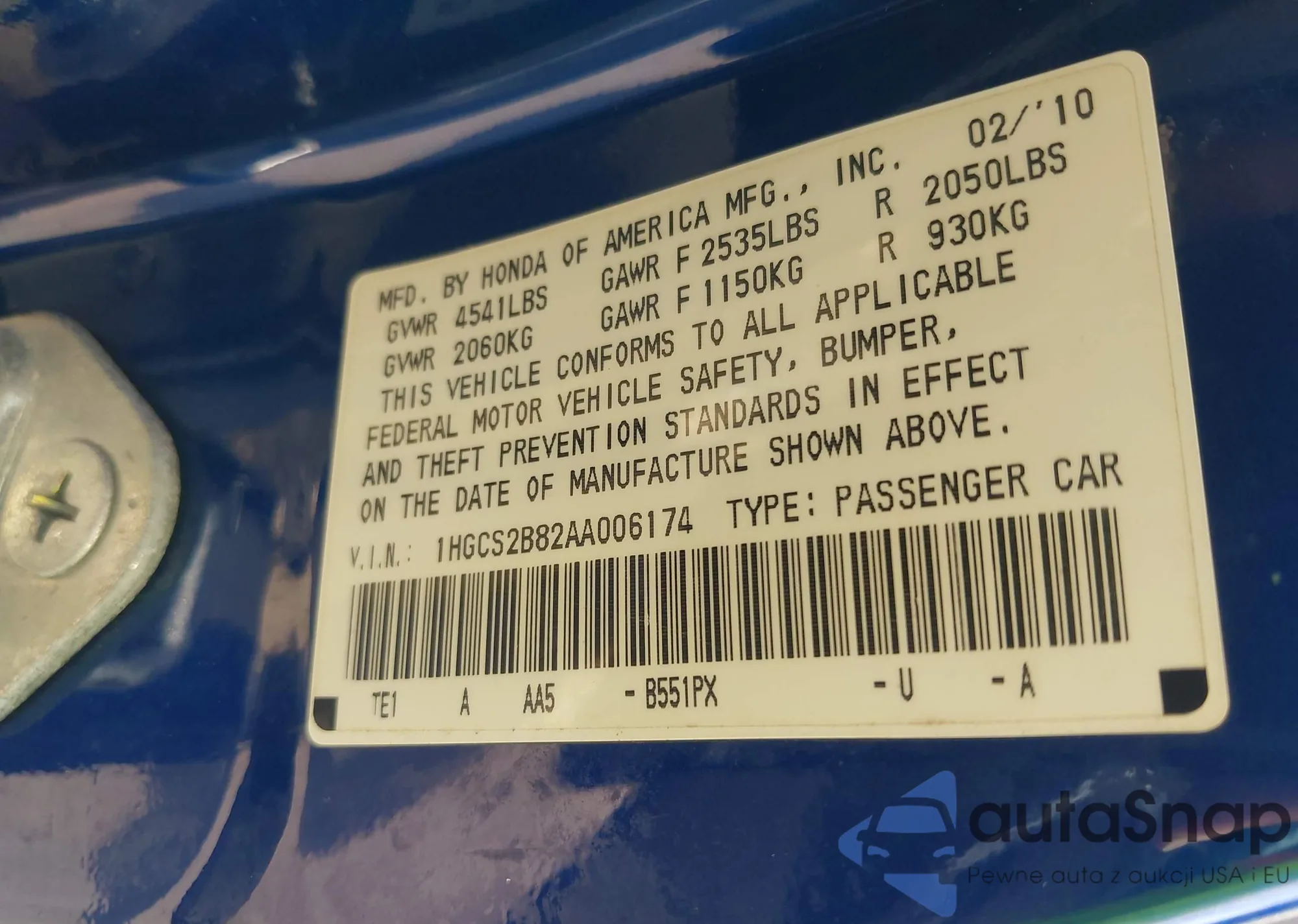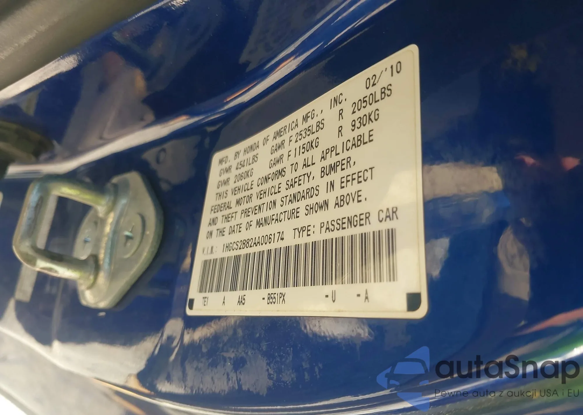 LOT: 42518075 VIN: 1HGCS2B82AA006174