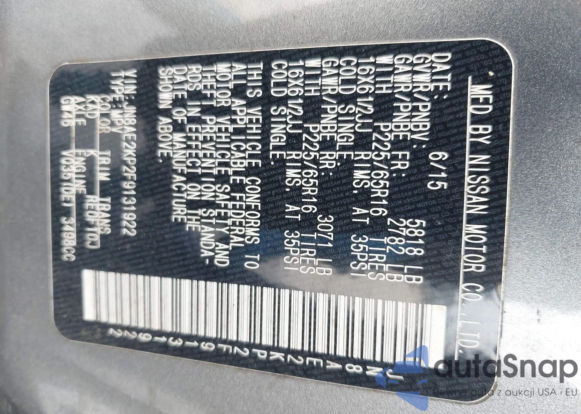 LOT: 42556939 VIN: JN8AE2KP2F9131922