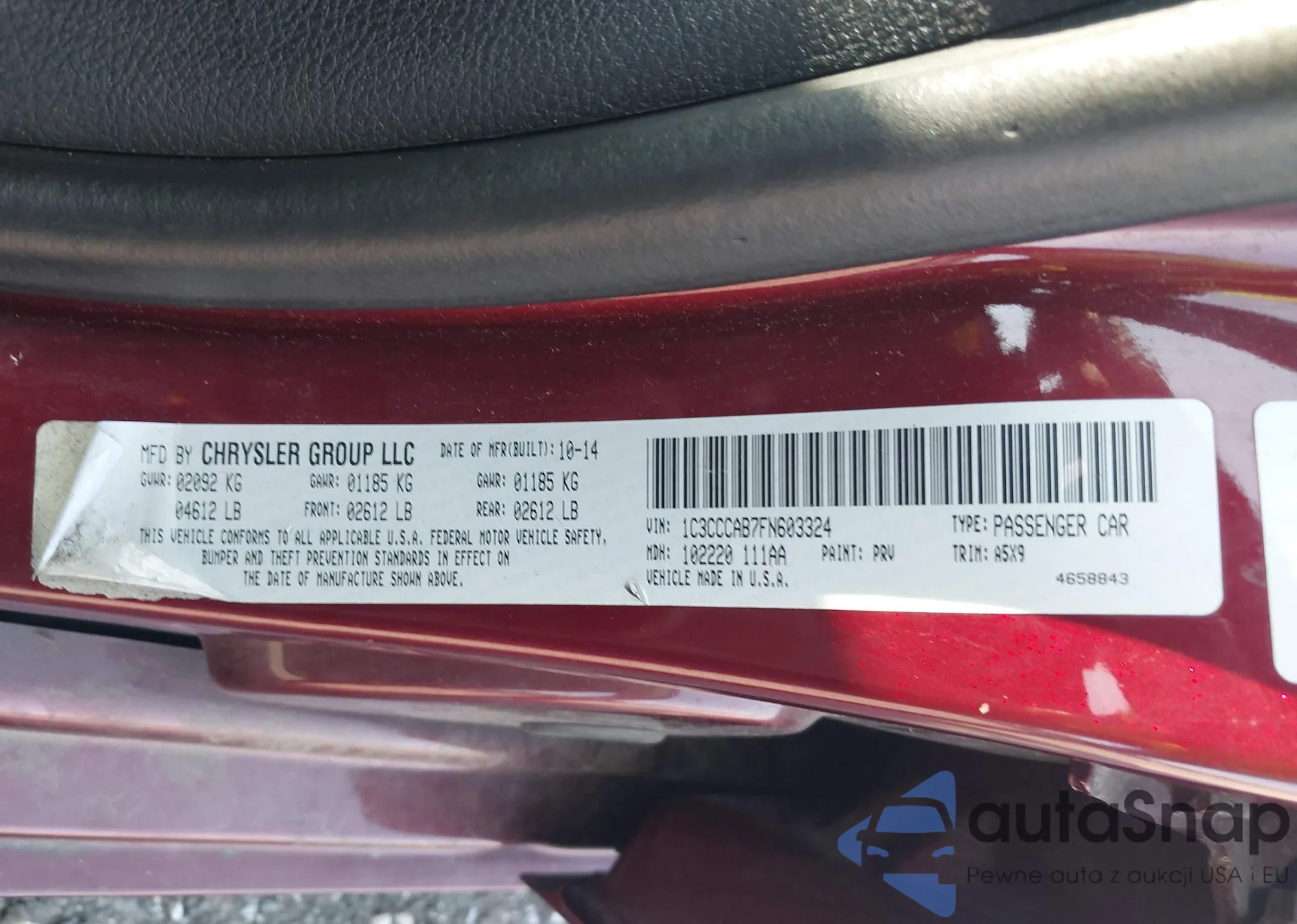 • VIN 1C3CCCAB7FN603324