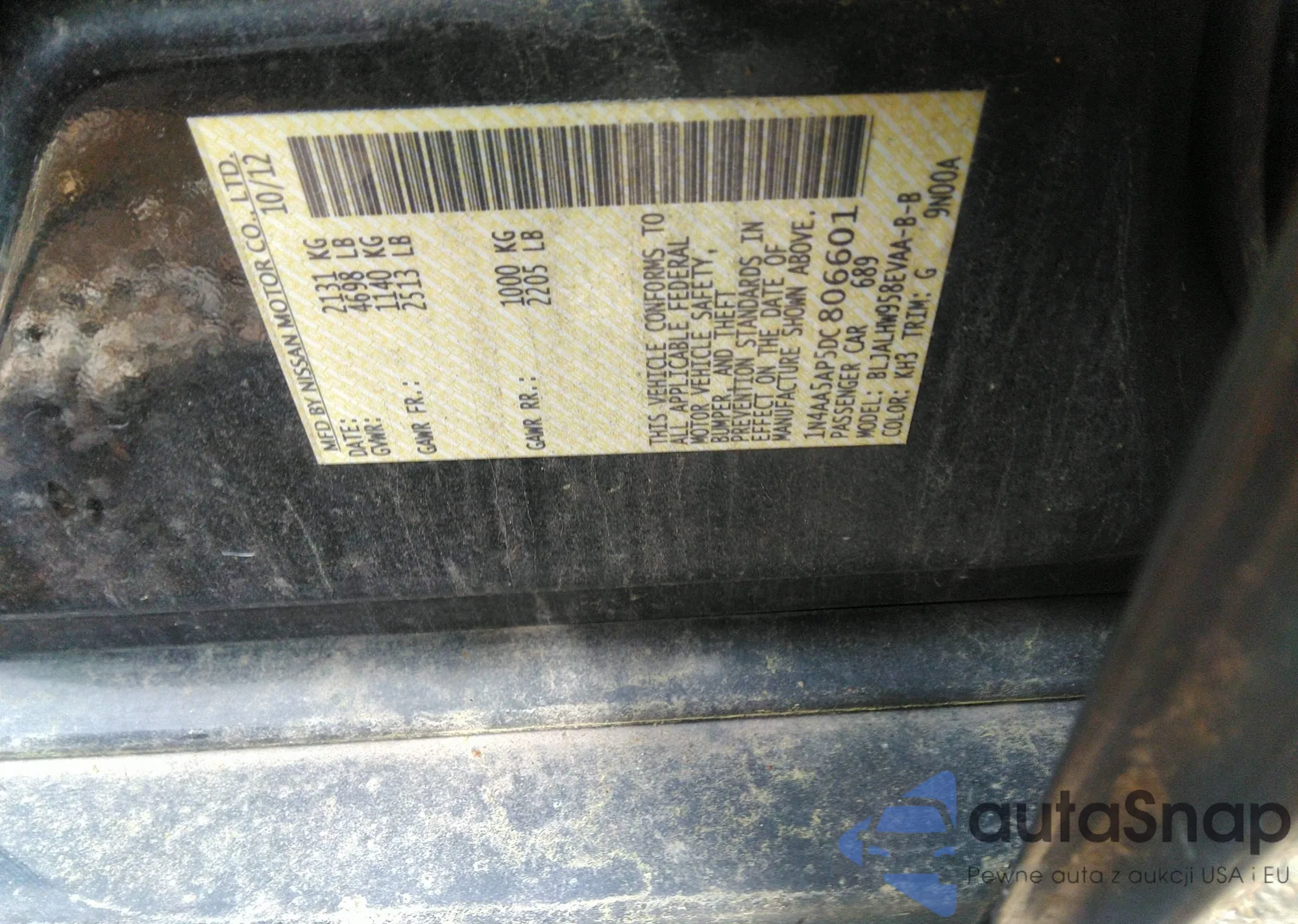 LOT: 42417745 VIN: 1N4AL24EX8C167009