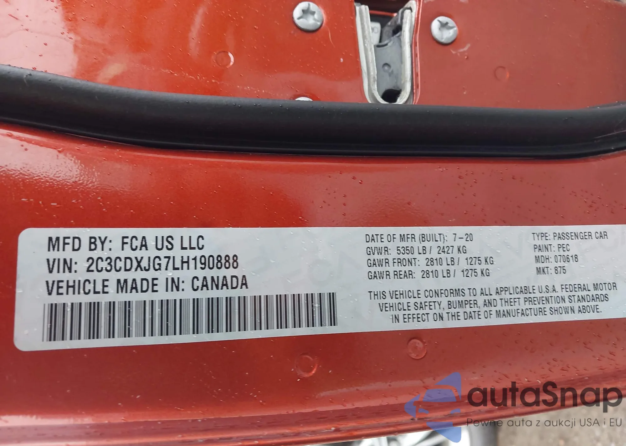 • VIN 2C3CDXJG7LH190888