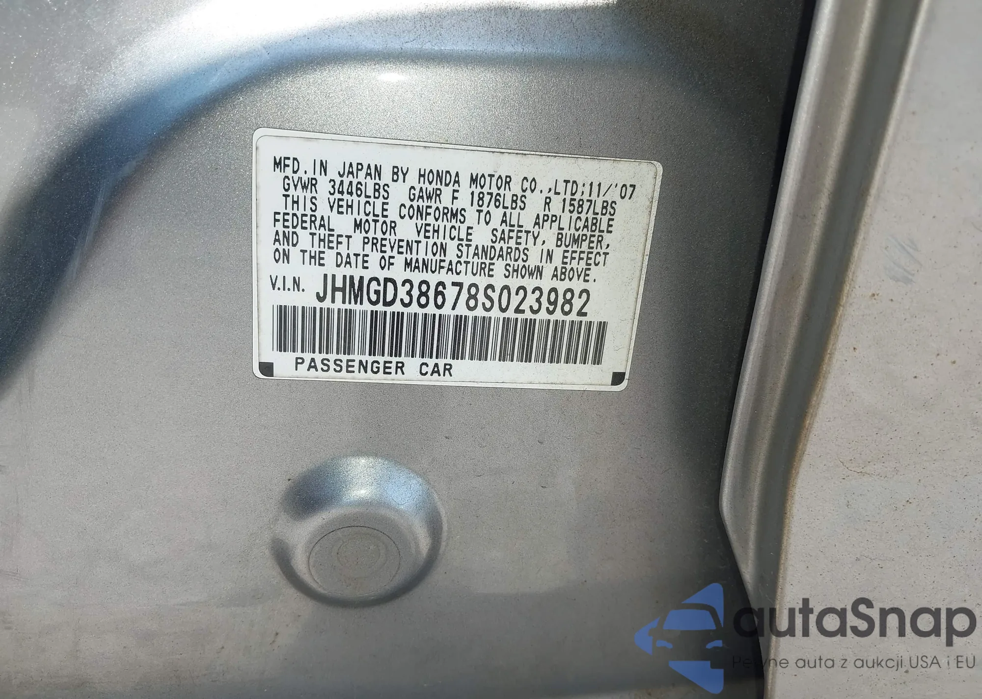 • VIN JHMGD38678S023982
