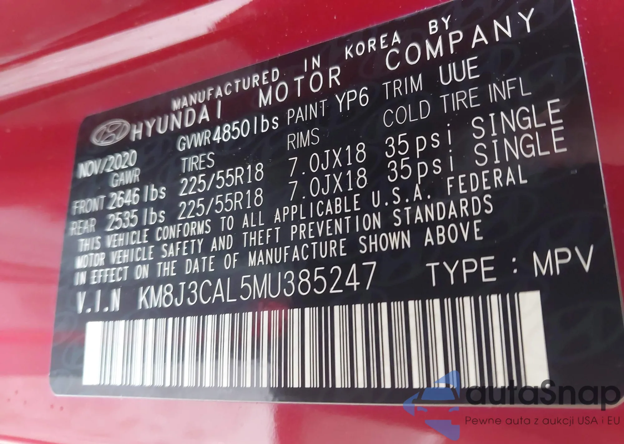 • VIN KM8J3CAL5MU385247