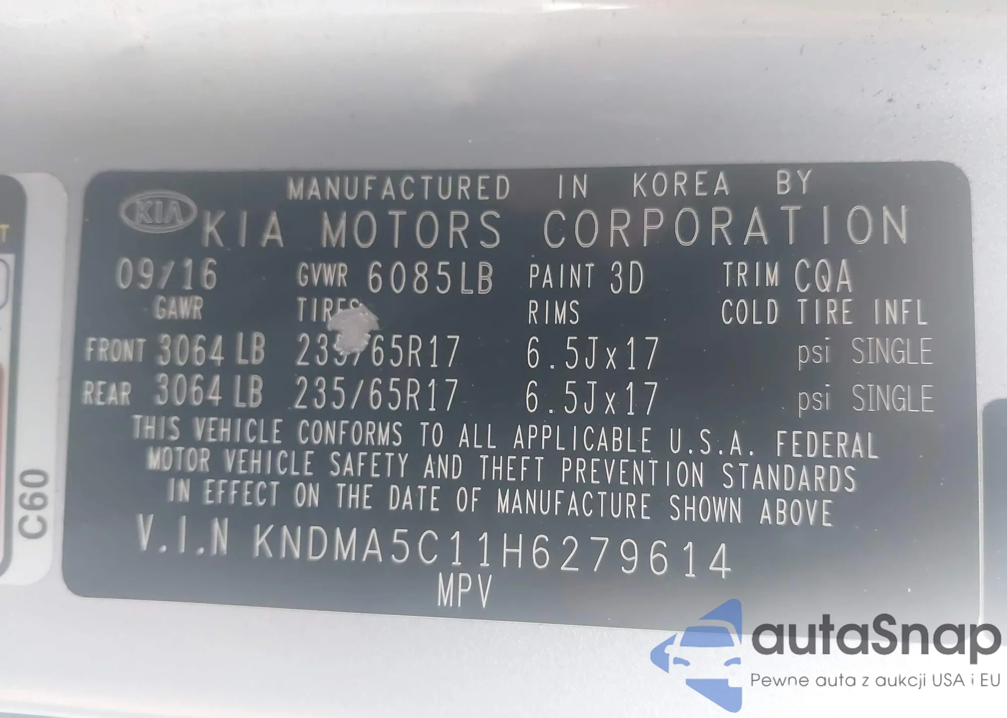 LOT: 42650654 VIN: KNDMA5C11H6279614