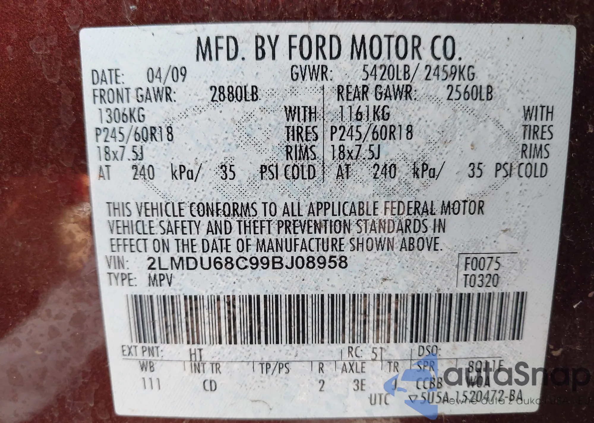 • VIN 2LMDU68C99BJ08958