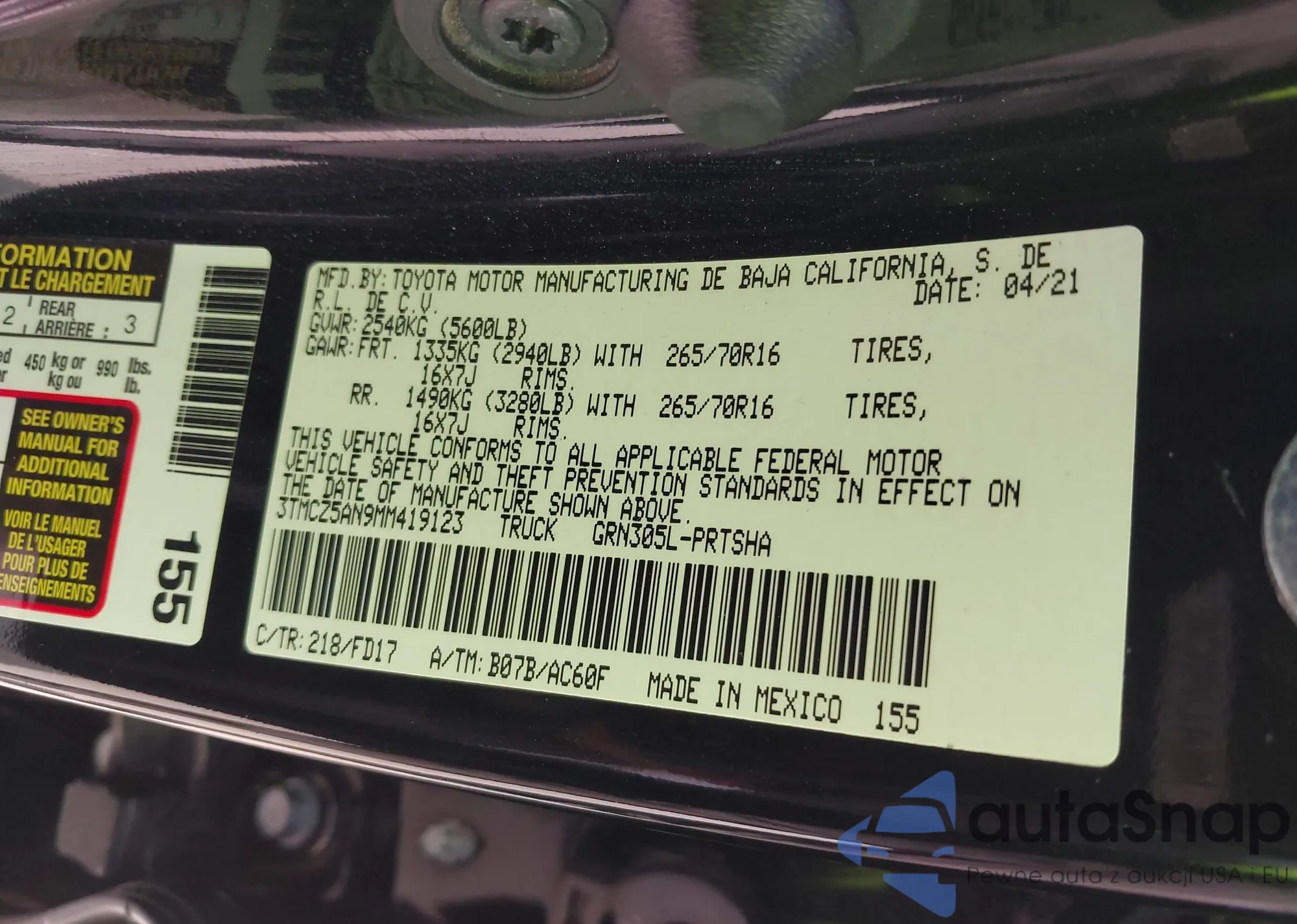 • VIN 3TMCZ5AN9MM419123