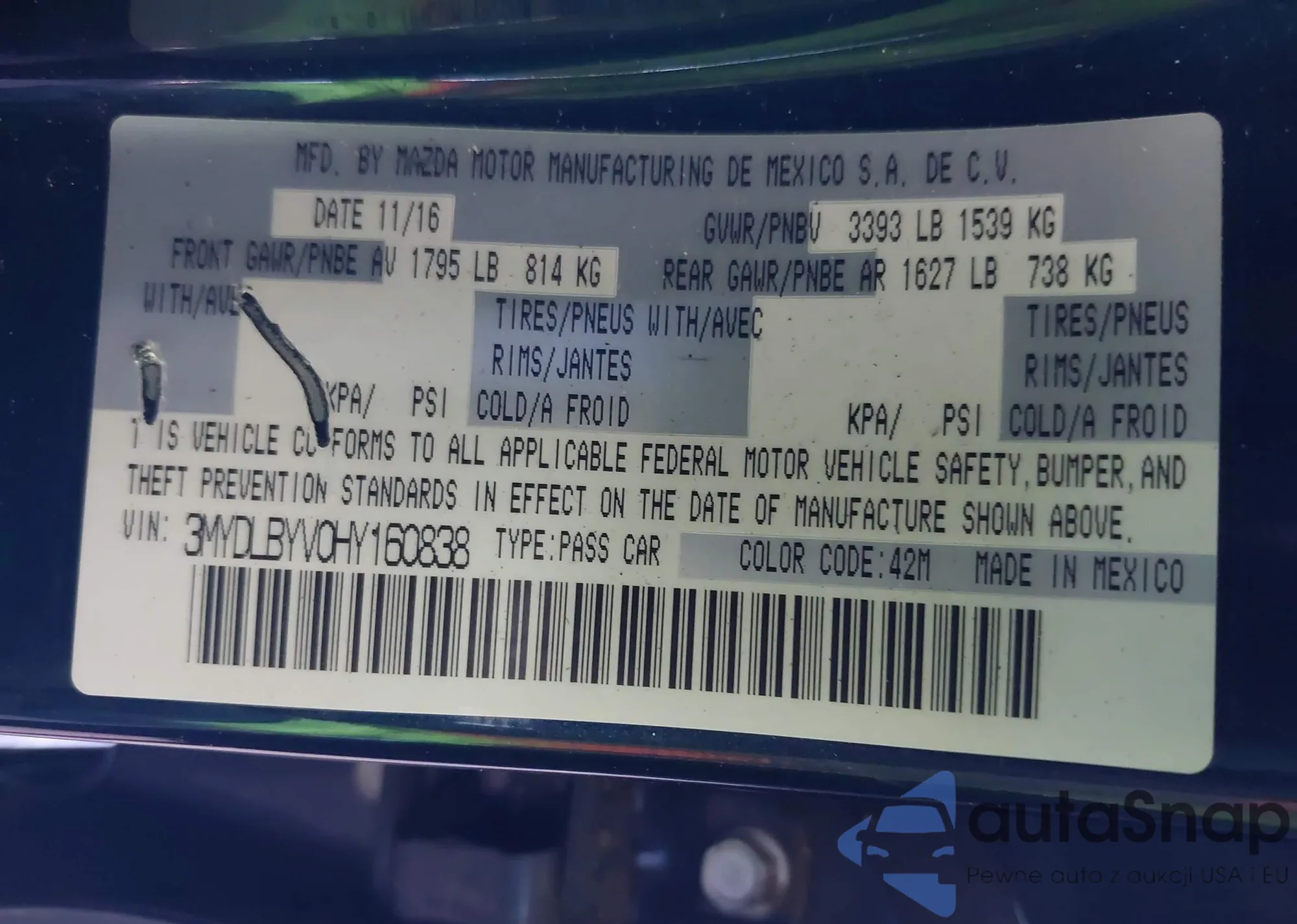 LOT: 42692013 VIN: 3MYDLBYV0HY160838