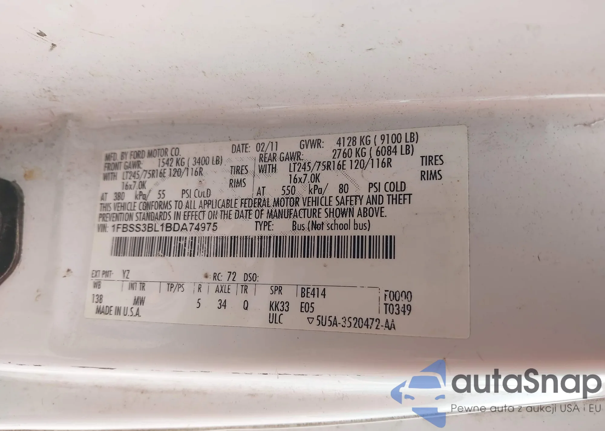 • VIN 1FBSS3BL1BDA74975