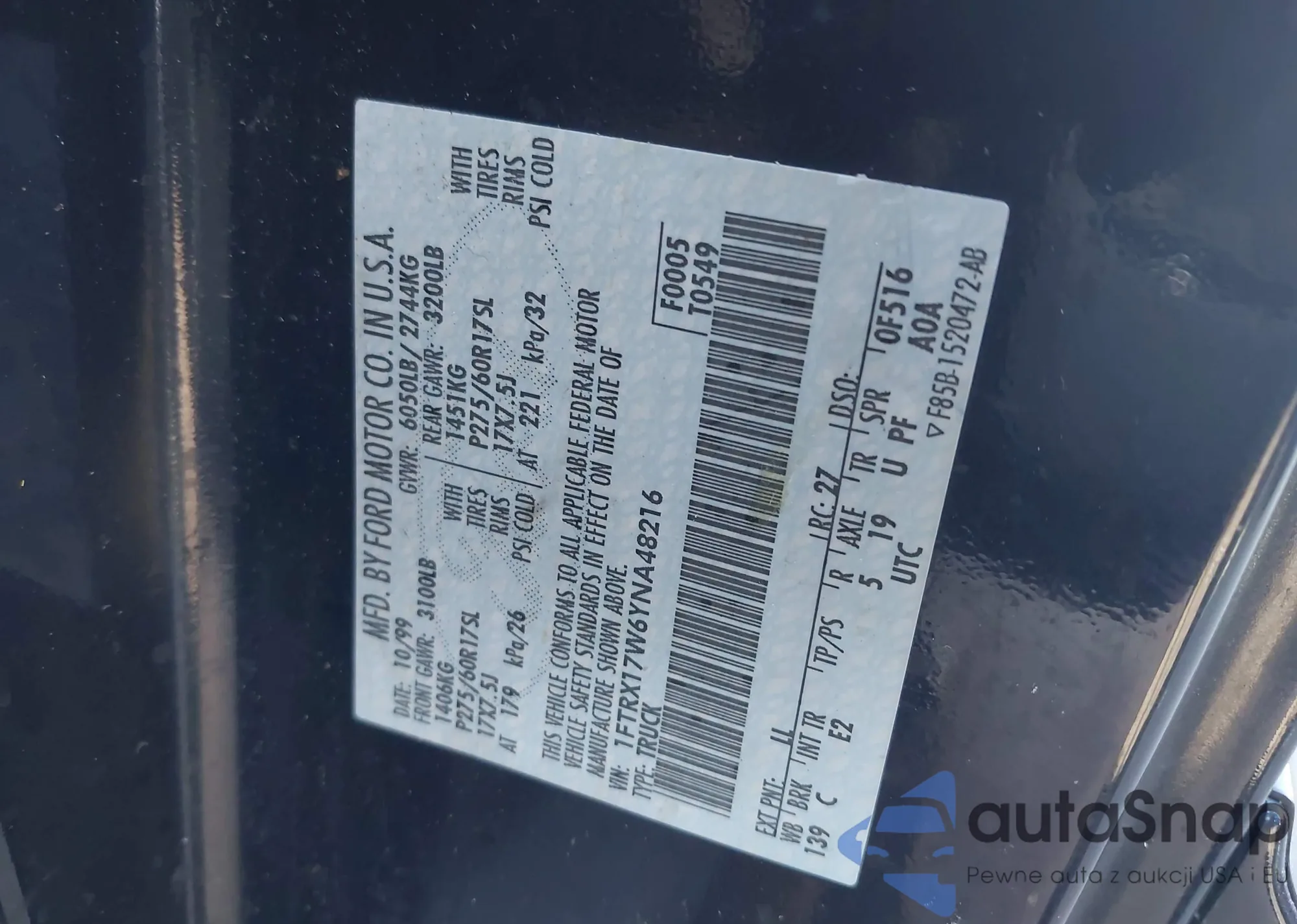 • VIN 1FTRX17W6YNA48216