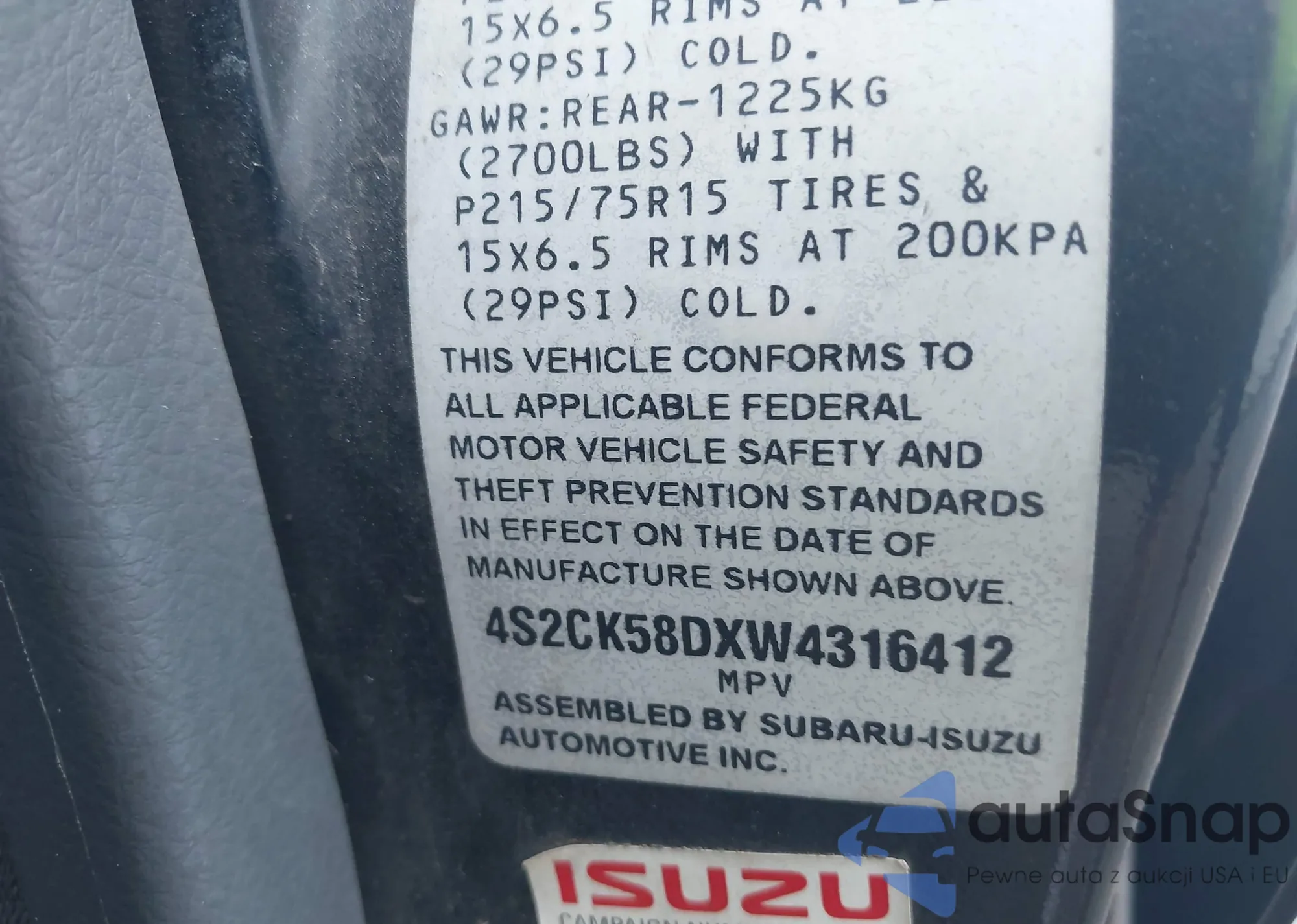 • VIN 4S2CK58DXW4316412