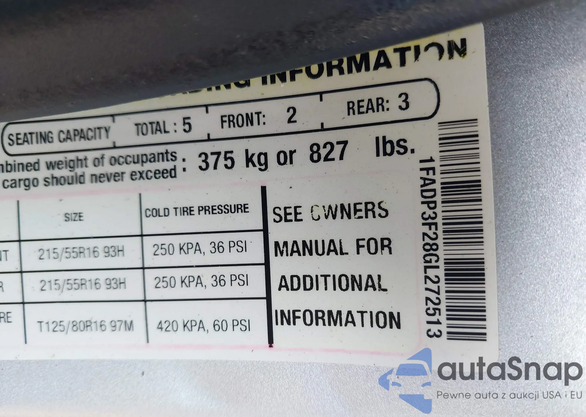 • VIN 1FADP3F28GL272513