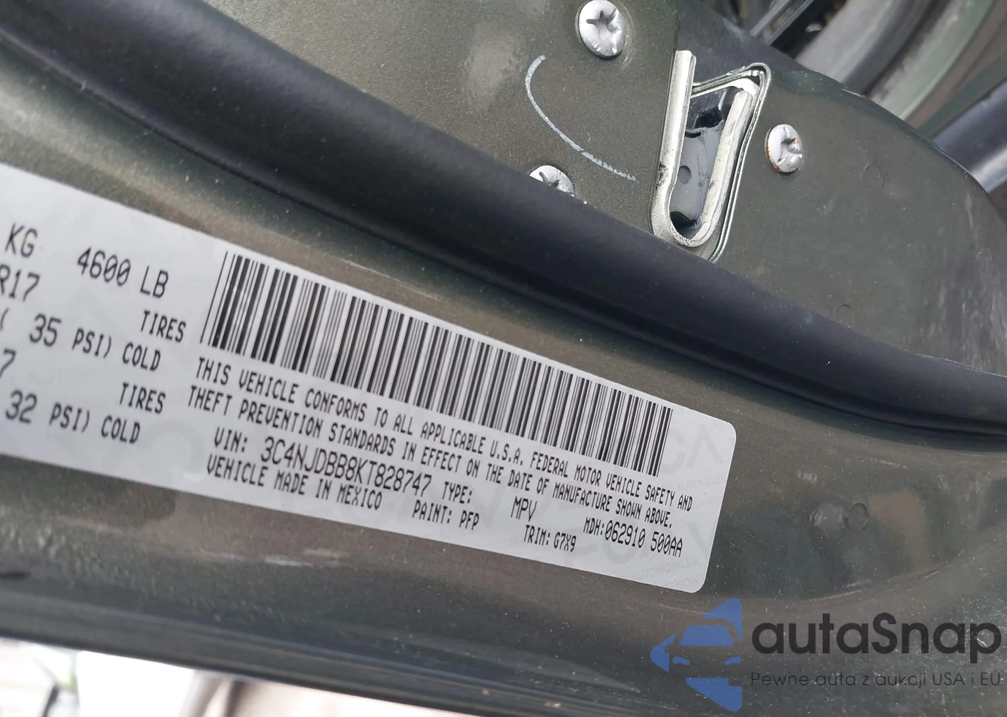 LOT: 42273871 VIN: 3C4NJDBB8KT828747