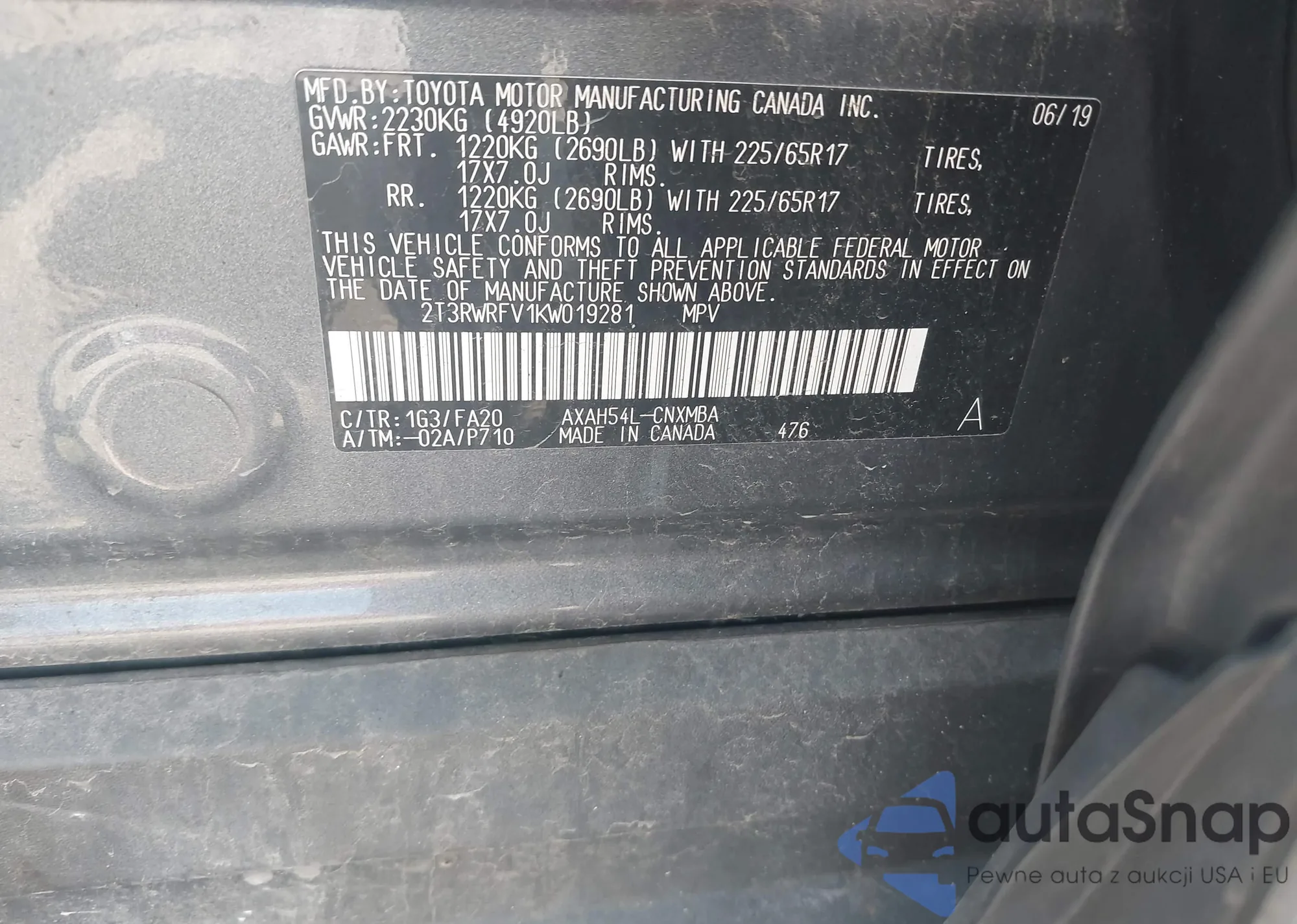 LOT: 42386290 VIN: 1HGCV2F57KA022007