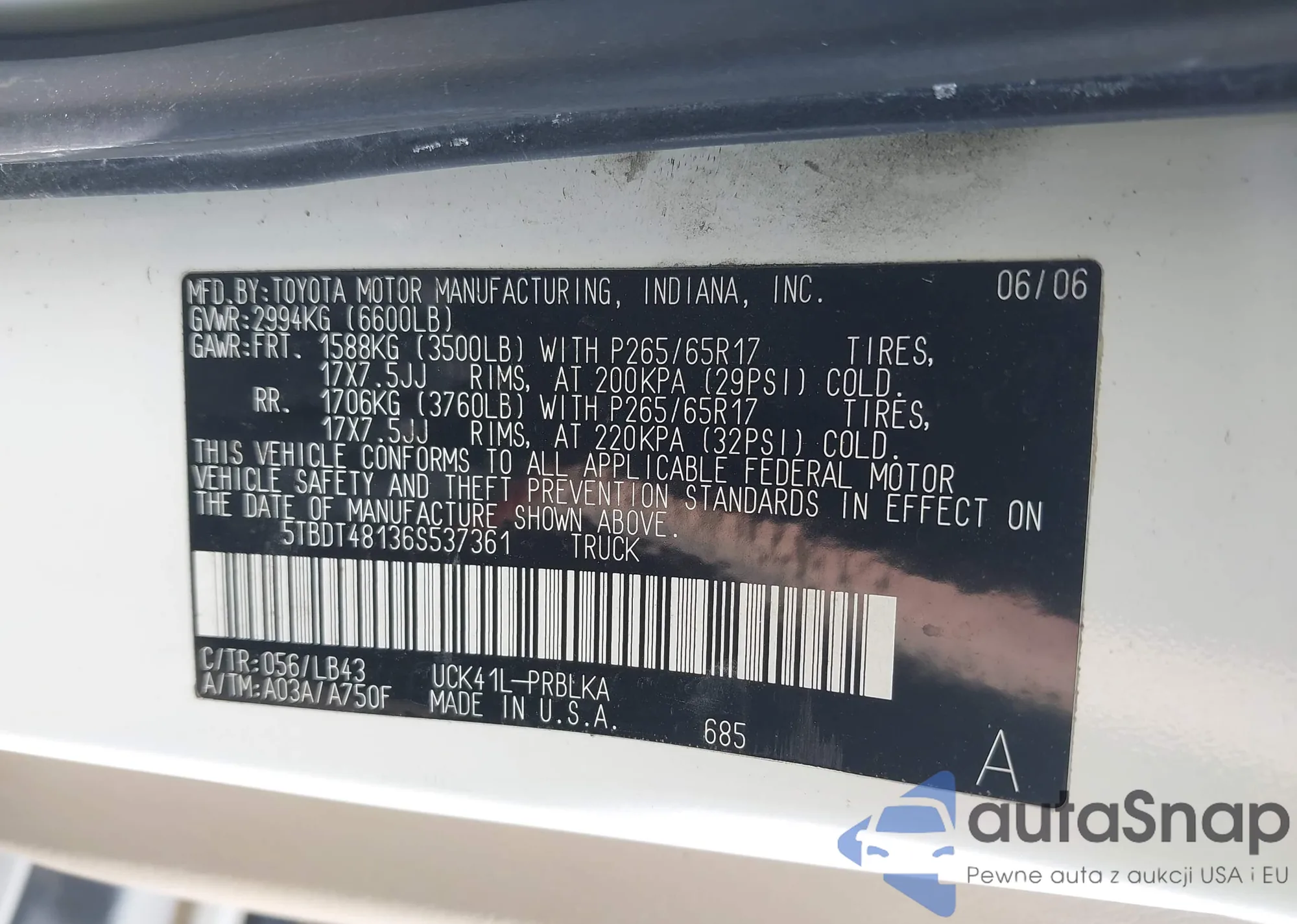 LOT: 42589375 VIN: 5TBDT48136S537361