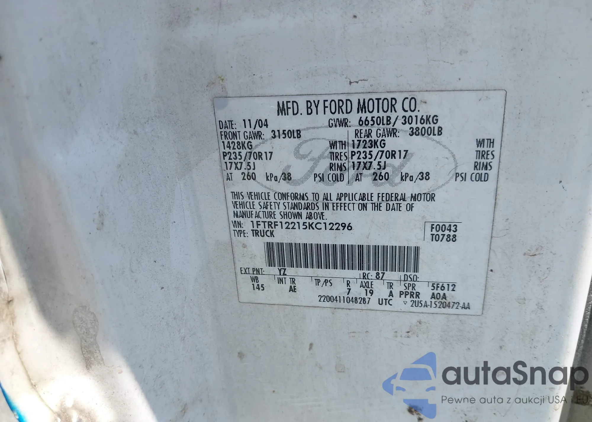 • VIN 1FTRF12215KC12296