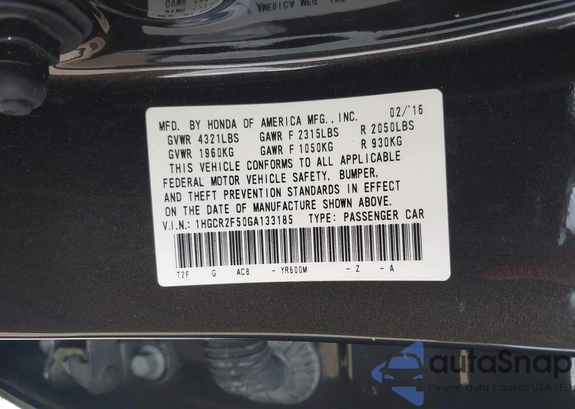• VIN 1HGCR2F50GA133185