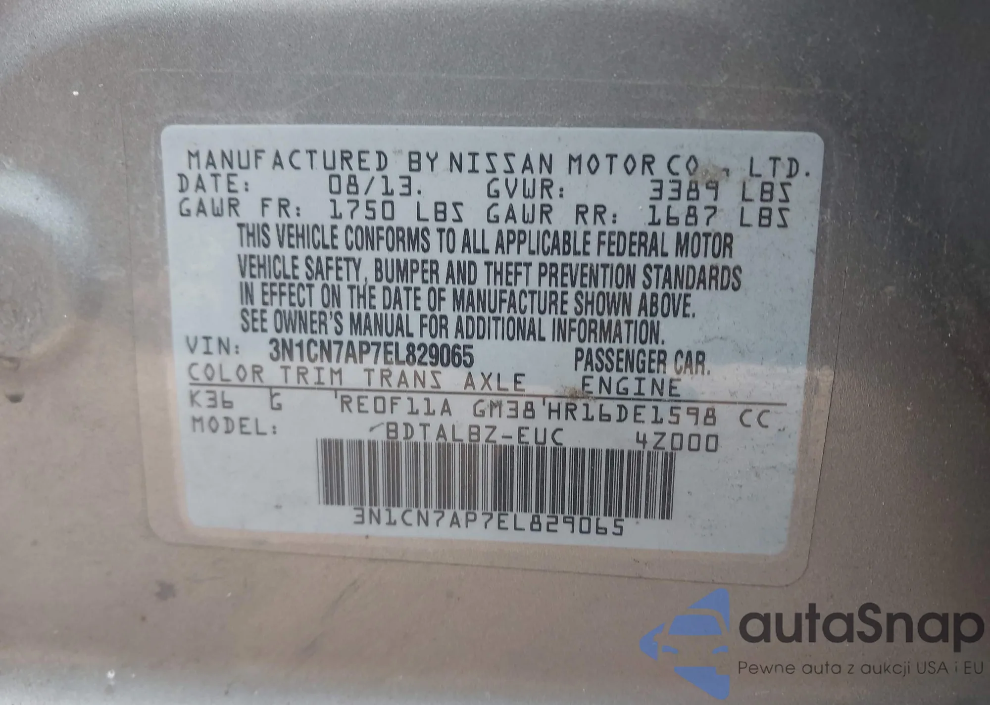 • VIN 3N1CN7AP7EL829065