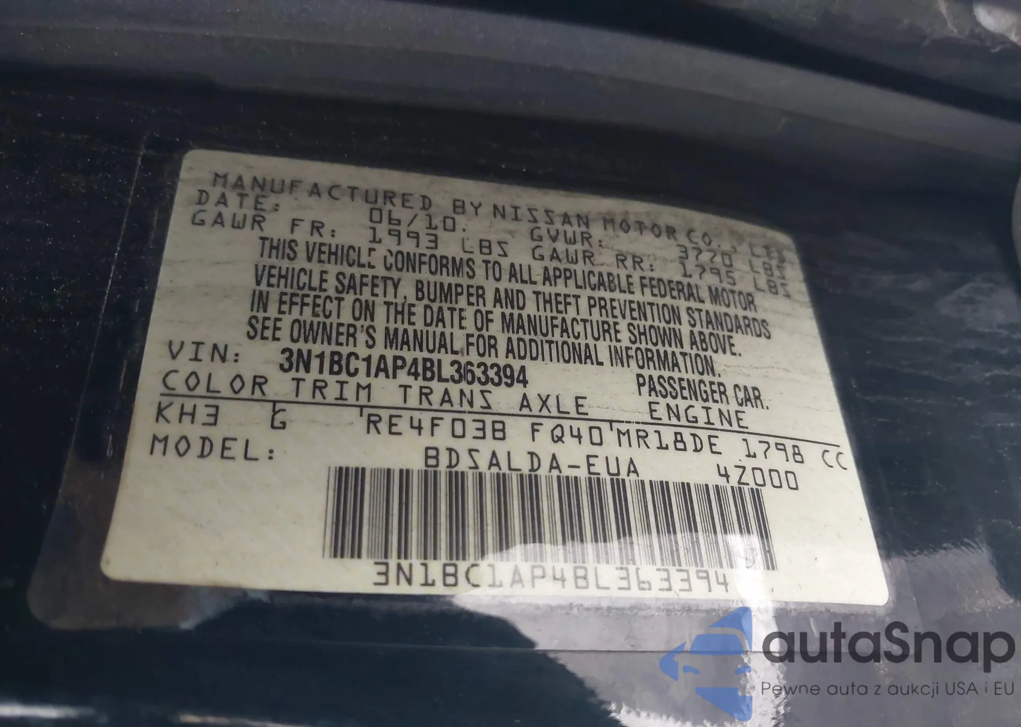 • VIN 3N1BC1AP4BL363394