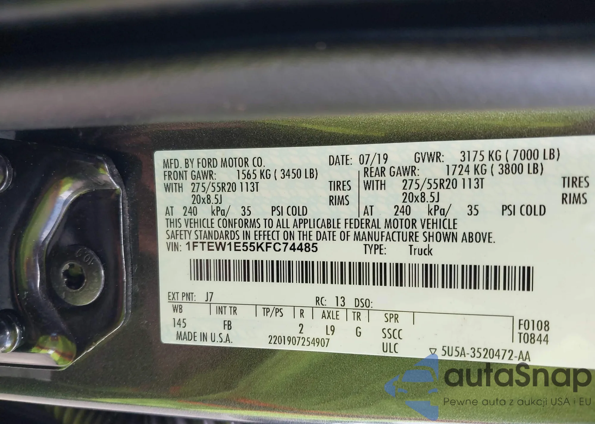 LOT: 42204915 VIN: 1FTEW1E55KFC74485