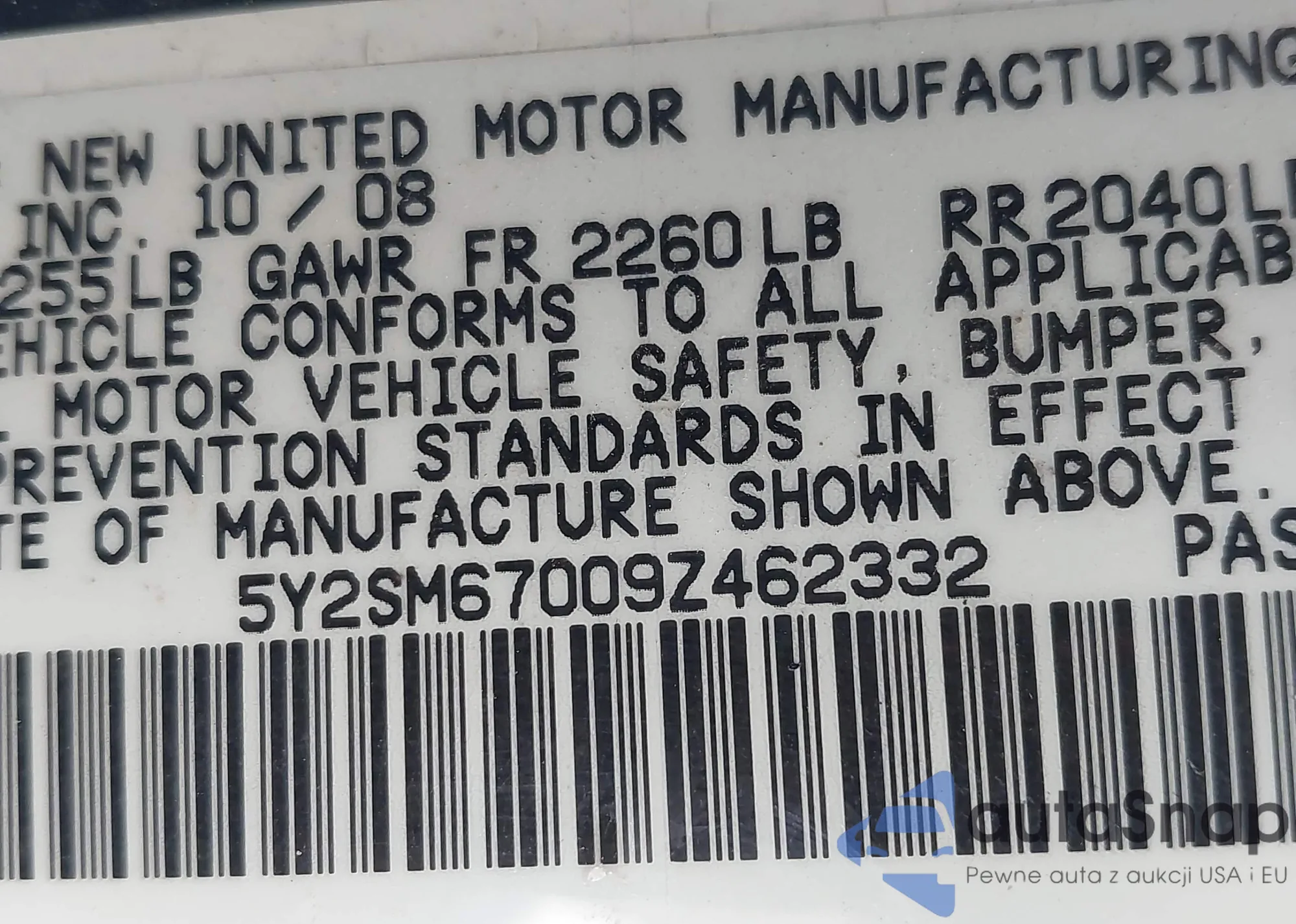 LOT: 42620669 VIN: 5Y2SM67009Z462332