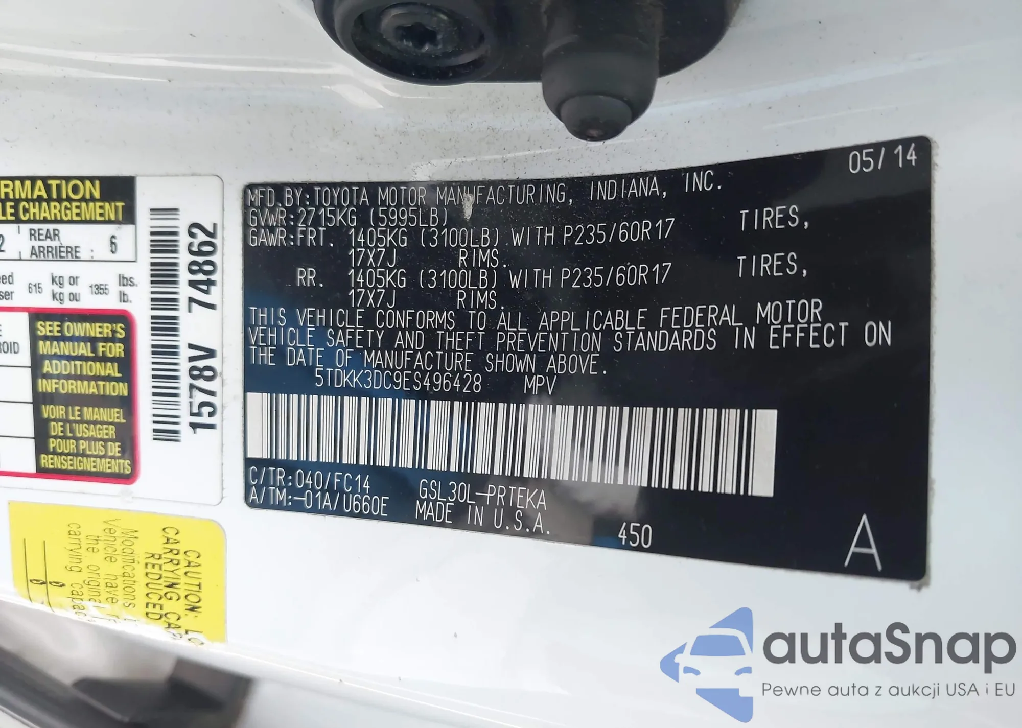• VIN 5TDKK3DC9ES496428