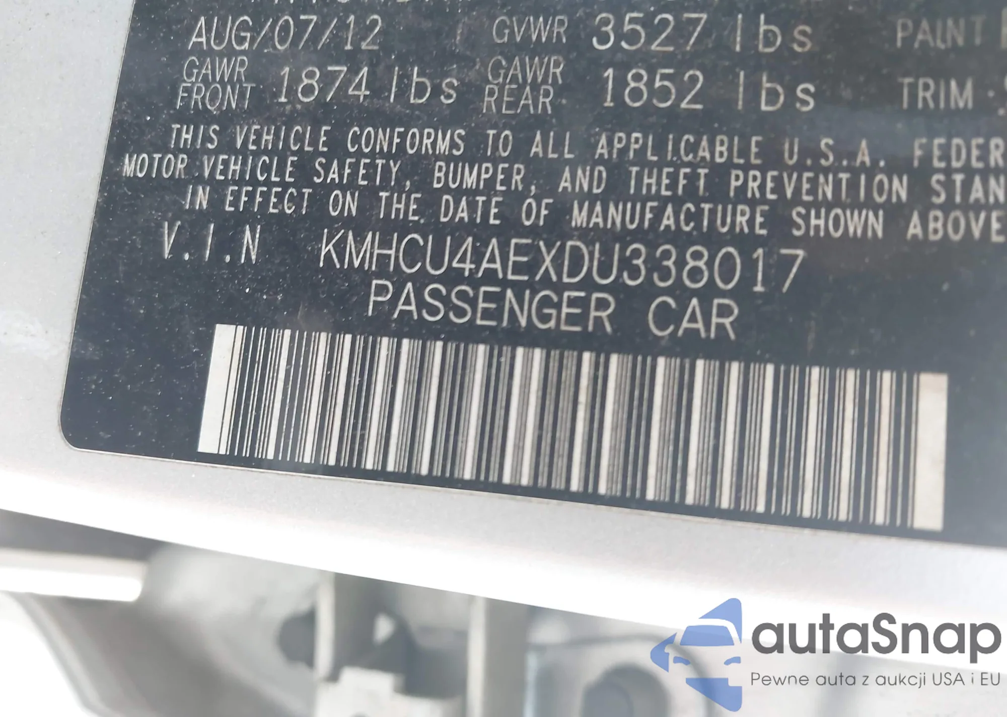 • VIN KMHCU4AEXDU338017