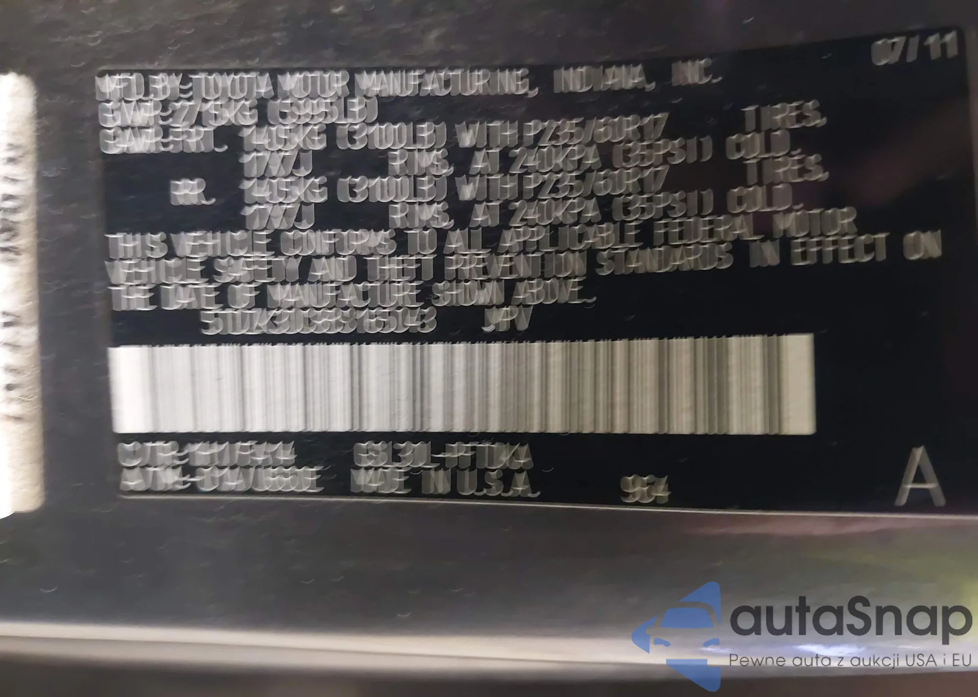 • VIN 5TDZK3DC8BS165043