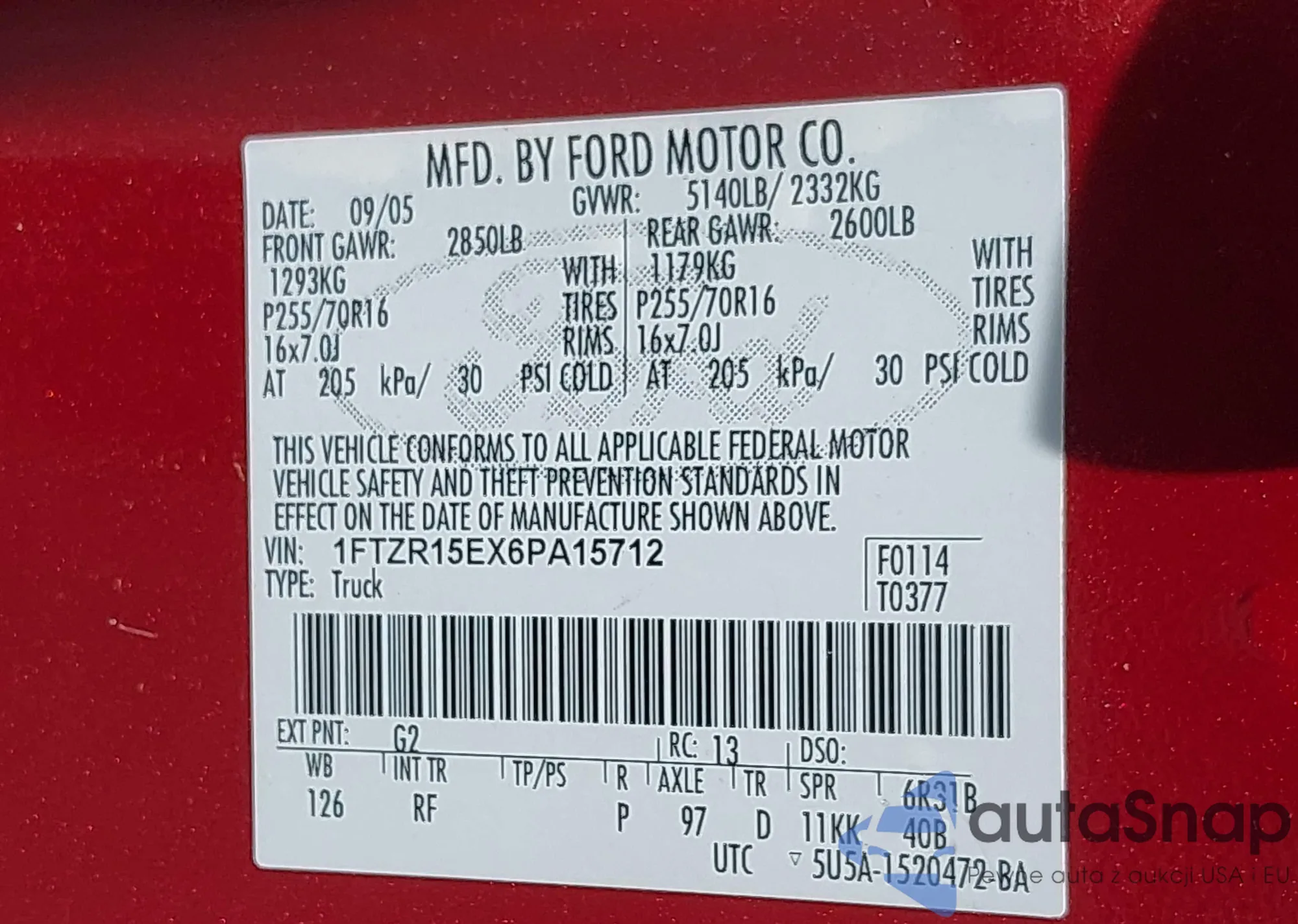 LOT: 42631795 VIN: 1FTZR15EX6PA15712
