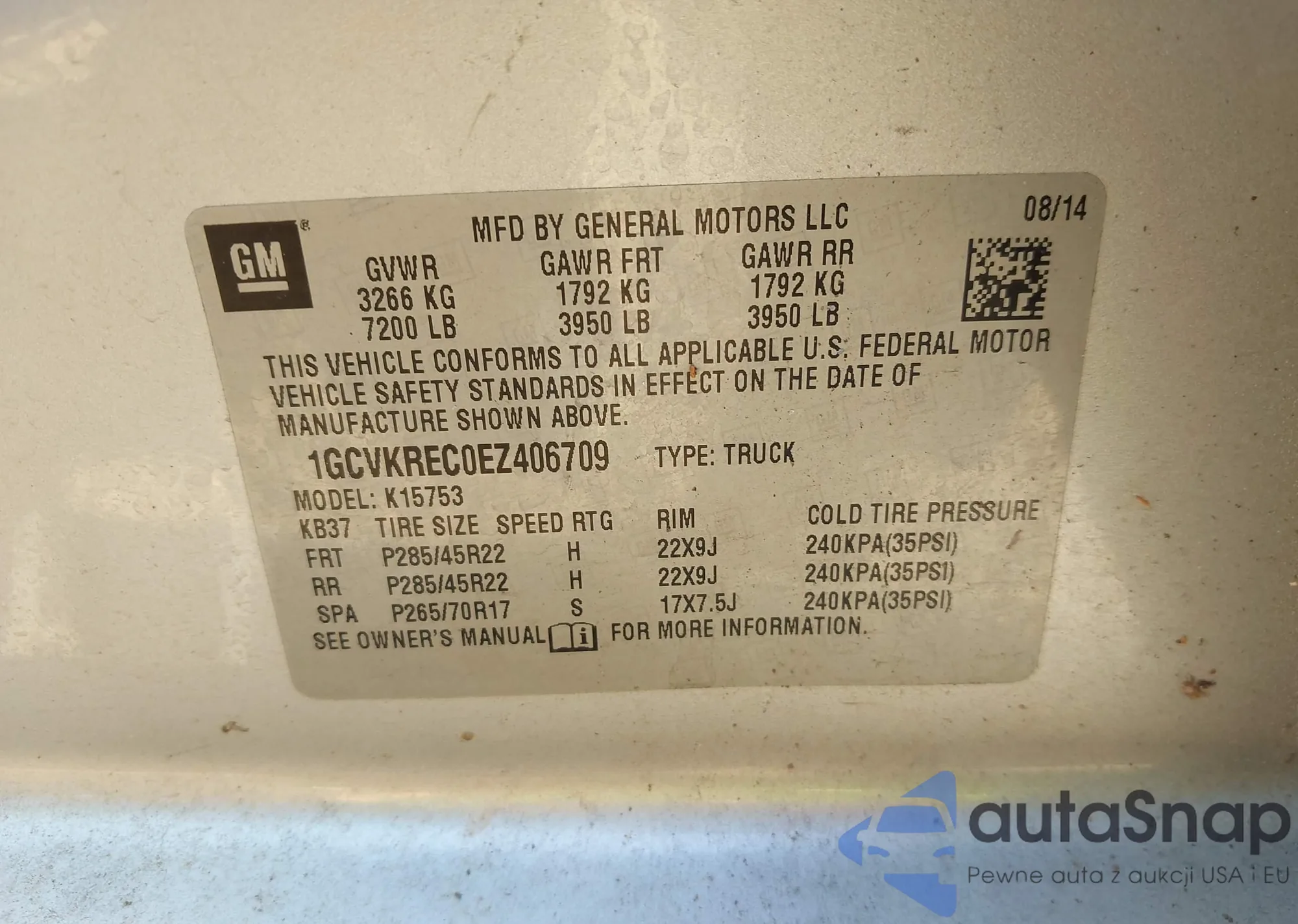 LOT: 42672090 VIN: 1GCVKREC0EZ406709