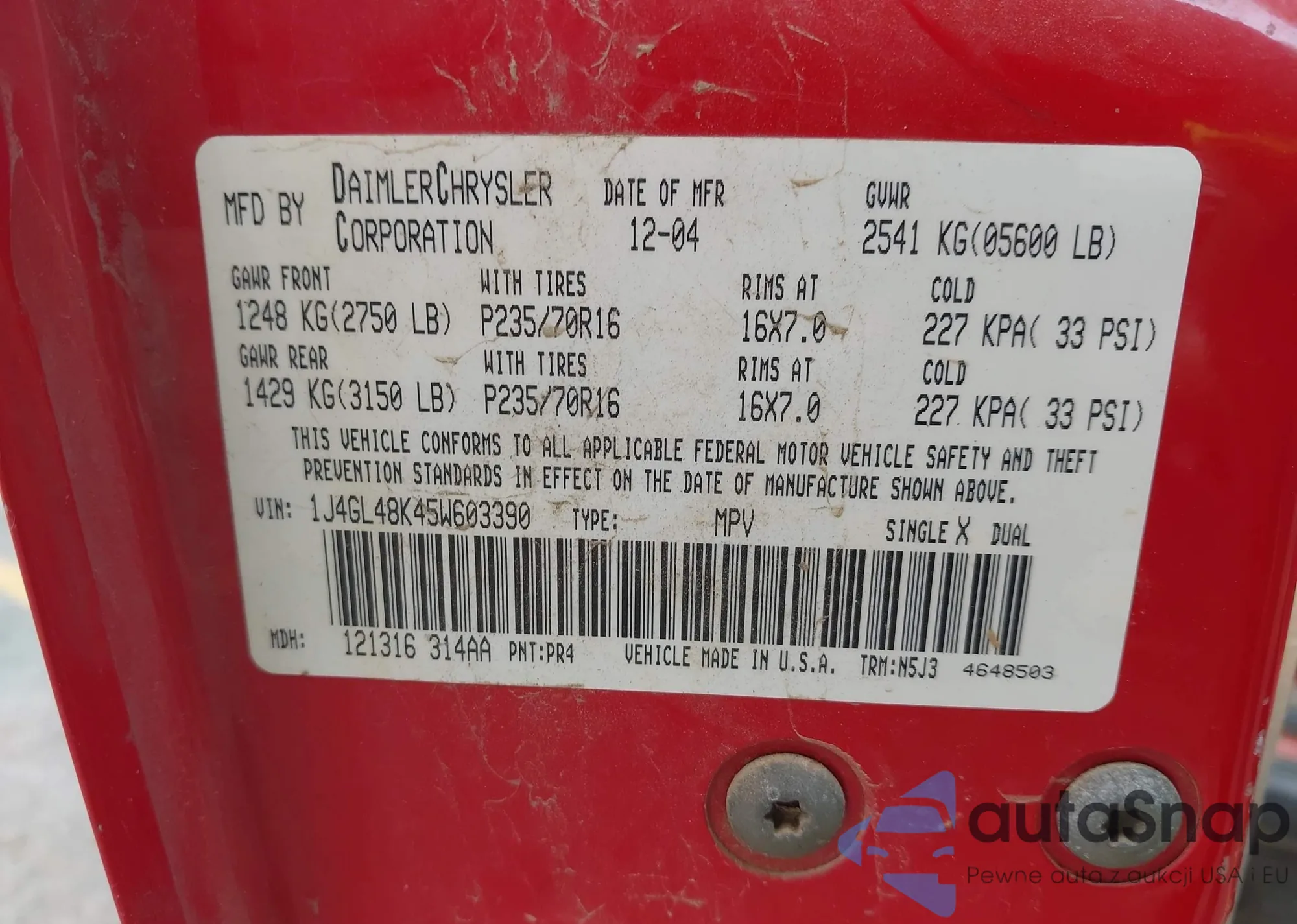 • VIN 1N6DD26T44C482220