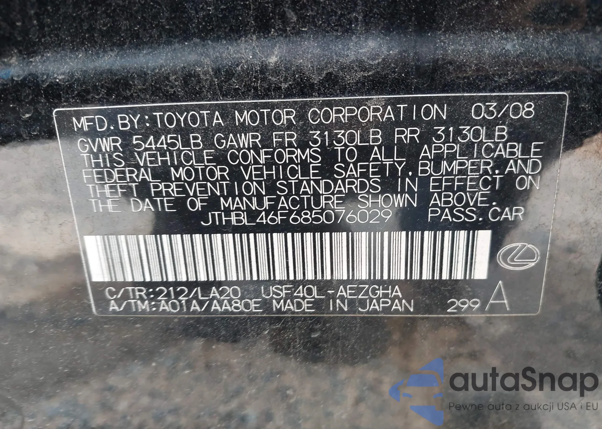 LOT: 42581542 VIN: 1FAFP53UX6A184373